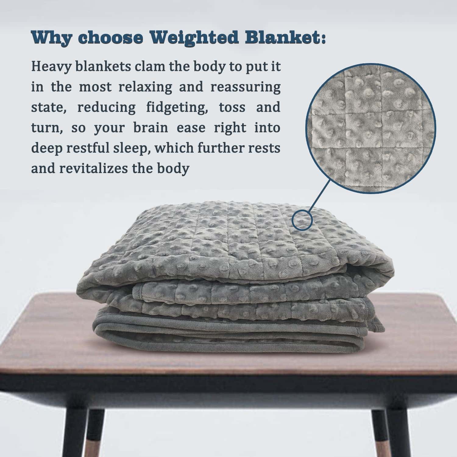 2. TEN UNA BUENA NOCHE: Nuestra manta ponderada se puede calmar y calmar tanto tus músculos como tu mente para una relajación completa. Esto promueve un sueño profundo y tranquilo que te dejará fresco y rejuvenecido. Encontrarás difícil resistir sus abrazos suaves y no podrás esperar a meterte en la cama todas las noches.