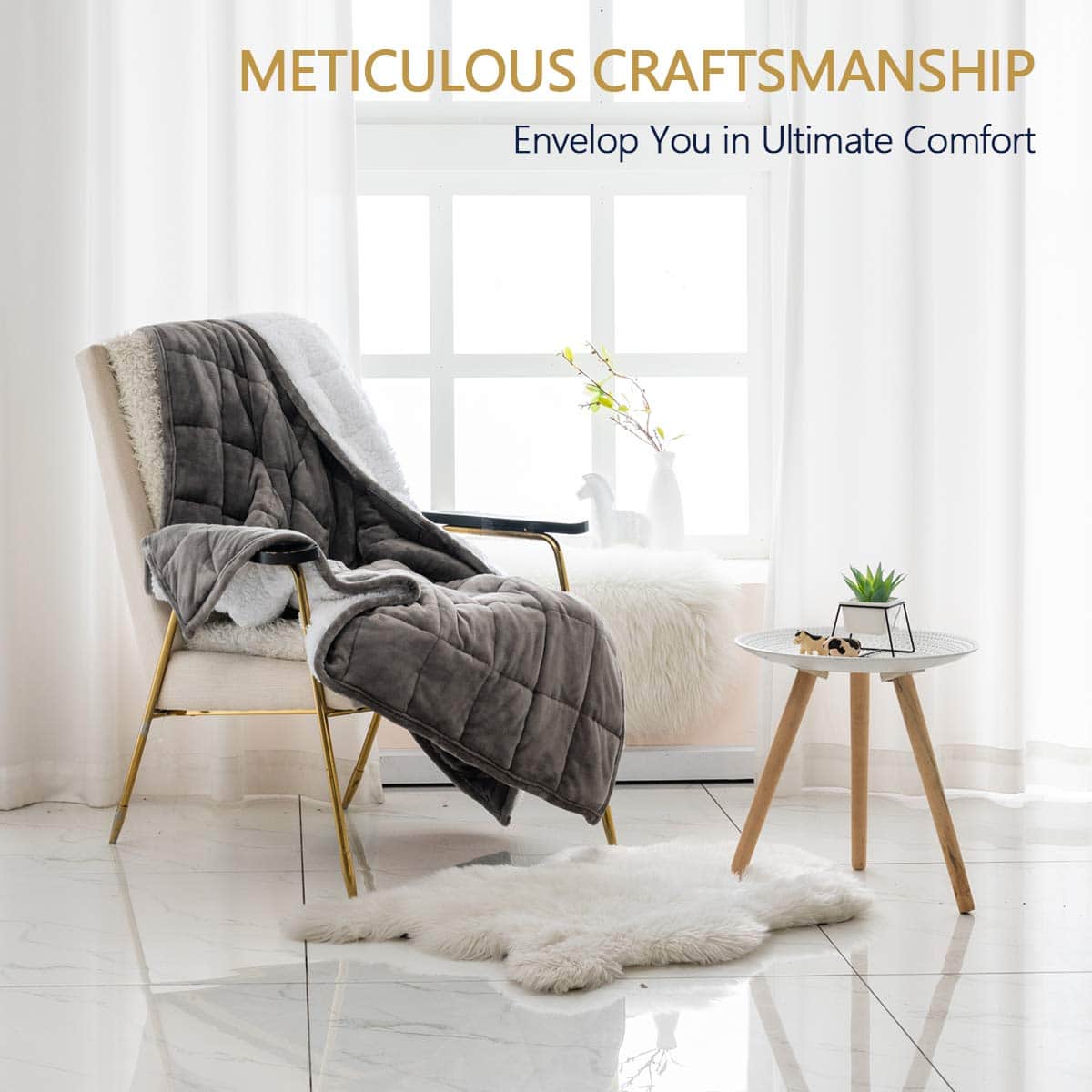 La manta ponderada Mr.Sandman en tamaño queen 60″x80″ de 15 libras está diseñada para proporcionar una sensación de abrazo reconfortante y ayudarte a relajarte. Con una parte superior de felpa Sherpa y un reverso de felpa esponjosa, esta manta ofrece múltiples niveles de suavidad para que te envuelvas en una nube de confort. Ideal para usar mientras ves televisión, tomas siestas o disfrutas de tu tiempo al aire libre, esta manta ponderada también es un regalo cuidadoso para tus seres queridos. Gracias a sus capas de fibra de poliéster firmes que envuelven de forma segura las cuentas de cerámica, no hay riesgo de fuga de cuentas. Además, el método de costura único asegura que el interior se distribuya uniformemente en cada bolsillo más pequeño, brindando una sensación de abrazo que ayuda a mejorar la calidad del sueño. Se recomienda elegir una manta ponderada que pese entre el 7% y el 13% de tu peso corporal, por lo que esta manta de 15 libras es perfecta para adultos que pesan entre 130 y 180 libras y duermen en una cama de tamaño completo o queen. Con un tamaño individual de 60″x 80″, esta manta ponderada está especialmente diseñada para tu relajación exclusiva. Confía en la calidad de nuestros materiales de alta gama, ya que garantizamos que nuestras mantas ponderadas de felpa no contienen productos químicos dañinos. Para el cuidado, se recomienda lavar a mano la manta y limpiar las manchas según sea necesario. Para obtener más información o asistencia postventa amigable, contáctanos.