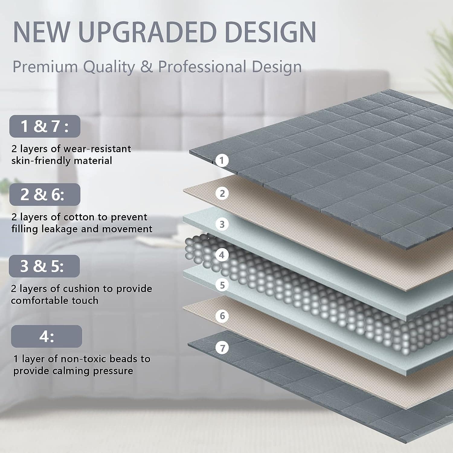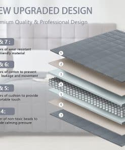 Una manta ponderada se moldea a tu cuerpo como un cálido abrazo, proporcionándote un ambiente de sueño cómodo y cálido. Asegúrate de que cada mañana estés lleno de energía y te sientas relajado. El material de la manta ponderada es poliéster de microfibra, que es más fuerte, más elástico y cómodo. La manta pesada contiene cuentas de vidrio ecológicas, que son transpirables y sin sabor. Al coser nuestras mantas ponderadas, utilizamos hilos de doble envoltura para hacer que la costura alrededor de la manta pesada sea más firme. Ofrecemos una variedad de tamaños y pesos para adaptarse a tus necesidades, desde tamaño individual hasta tamaño king, con opciones de 12 a 25 libras. Nuestra fábrica garantiza la calidad de las mantas ponderadas y ofrece un excelente servicio al cliente. Si tienes algún problema con nuestros productos, contáctanos en cualquier momento para obtener una garantía de reemplazo gratuito y un servicio satisfactorio.