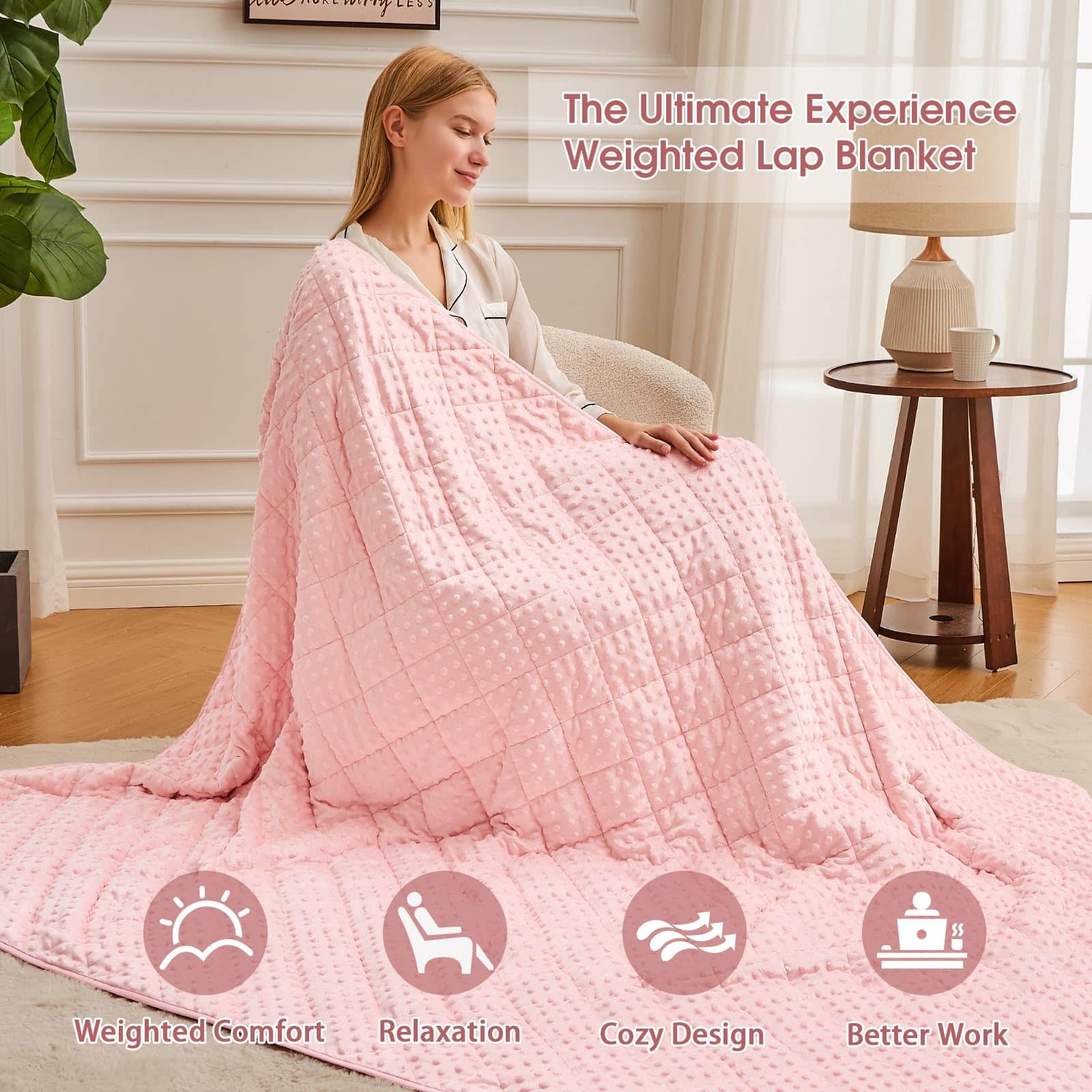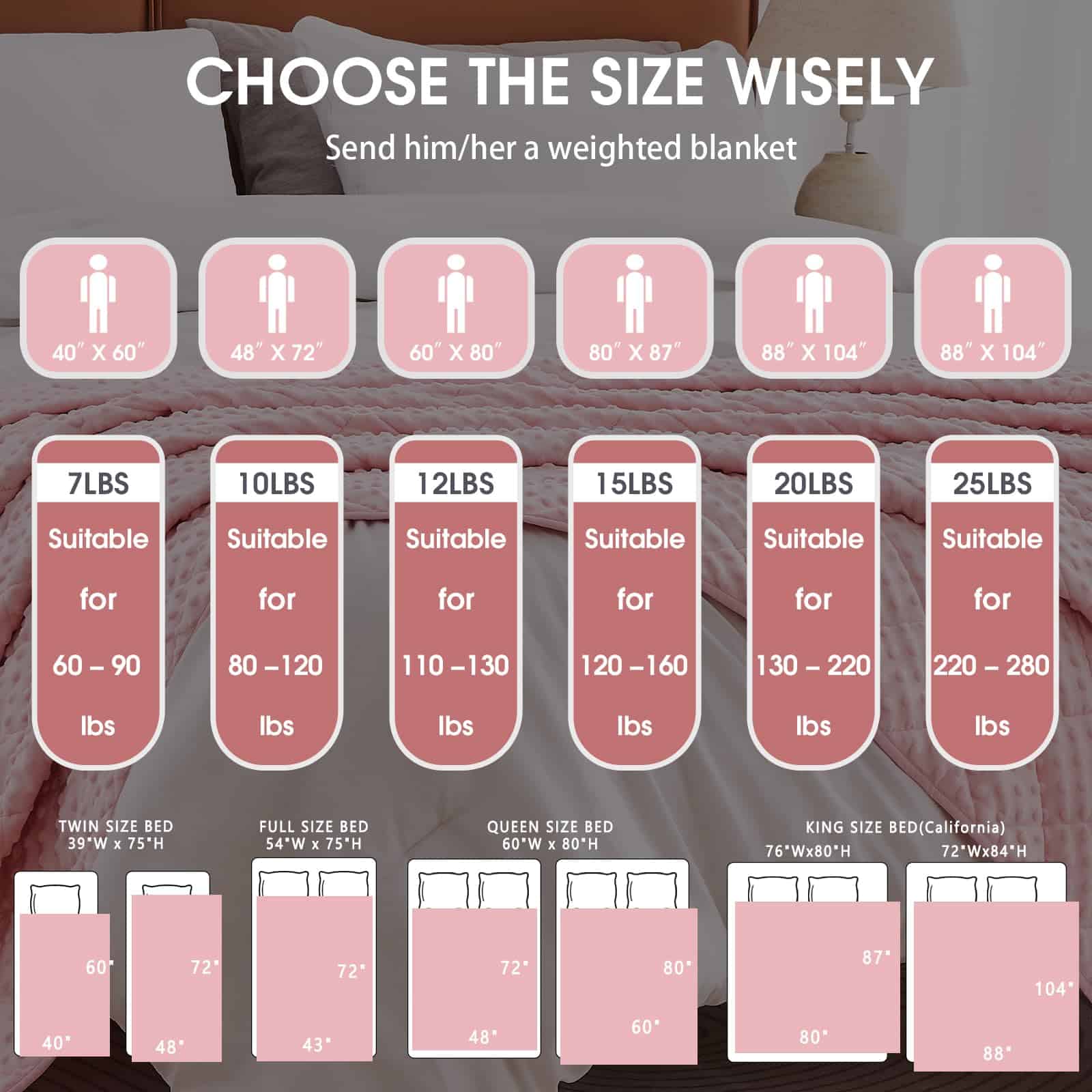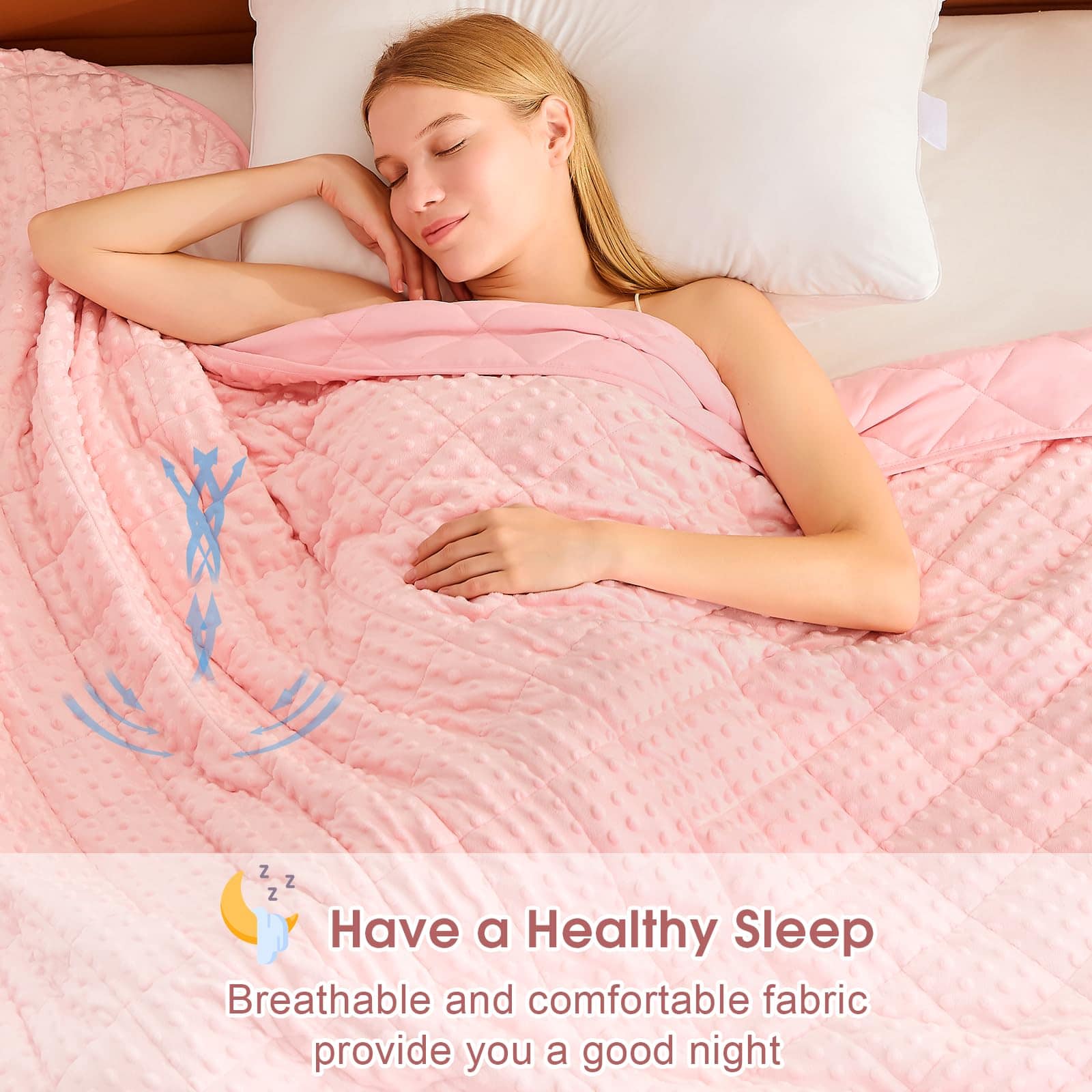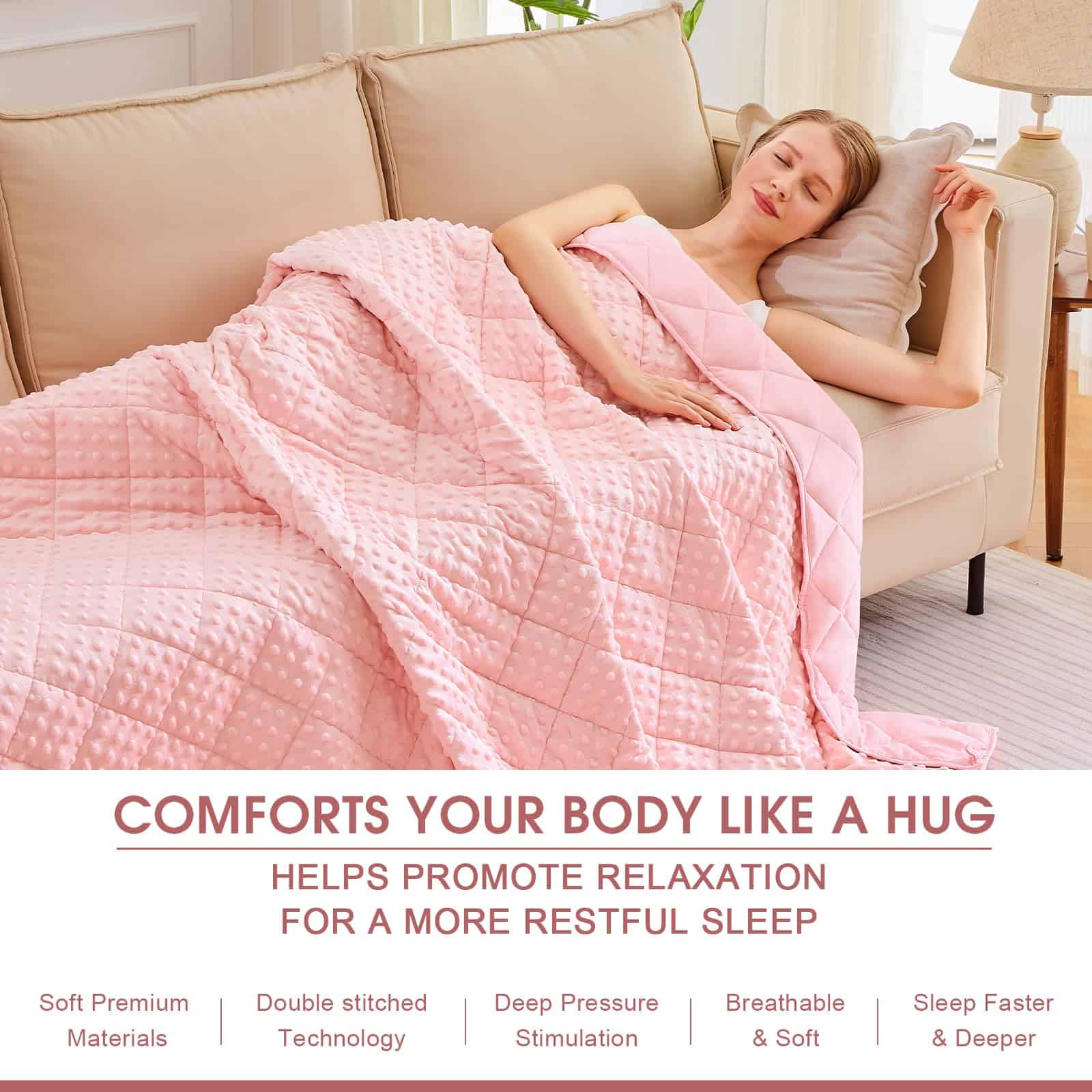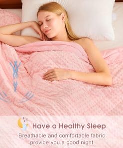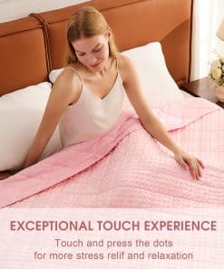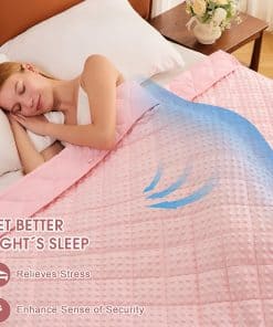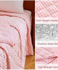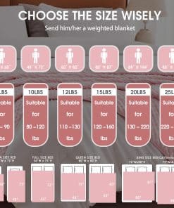 Una manta ponderada se moldea a tu cuerpo como un cálido abrazo, te proporciona un ambiente de sueño cómodo y cálido, asegúrate de que cada mañana te llene de energía y te sientas relajado. Nuestra manta ponderada para niños de 7 lbs envuelve y calma tu cuerpo con suficiente peso para brindarte la sensación de abrazo y seguridad para que duermas hasta la mañana. El material de la manta ponderada es poliéster de microfibra, que es más fuerte, más elástico y cómodo. La manta pesada contiene cuentas de vidrio ecológicas, que son transpirables y sin sabor. Al coser nuestras mantas ponderadas, utilizamos hilos de doble envoltura para que la costura alrededor de la manta pesada sea más firme. Espacio de aguja 1″/9 puntadas (incluyendo la longitud de la puntada de acolchado, para asegurar que las cuentas de vidrio dentro de la manta pesada no se muevan ni se caigan). Un lazo en cada una de las cuatro esquinas y un lazo en cada uno de los cuatro lados (1 cm de ancho 6 cm de largo, fijado por costura de vuelta), un total de 8 lazos, fácil de instalar la funda nórdica. Como manta ponderada de tamaño de lanzamiento, los niños se aliviarían con el cálido abrazo proporcionado por su suave presión de cuentas de vidrio distribuidas uniformemente sin dolor en los músculos y huesos. Elija el tamaño correcto para tener una experiencia cómoda. La investigación recomienda que la manta ponderada para niños debe ser como mínimo el 10% del peso de sus hijos. Si sus hijos están probando por primera vez, una manta pesada más ligera es más adecuada. Contamos con nuestra propia fábrica, y años de experiencia nos han ayudado a producir mantas ponderadas de mejor calidad para devolver a los consumidores. Es la garantía de la producción final de la manta pesada que podemos brindar a los consumidores una mejor garantía postventa. Si tiene algún problema con los productos que ha comprado, puede contactar nuestra tienda en cualquier momento, nuestra tienda garantizará el reemplazo gratuito y el servicio satisfactorio.