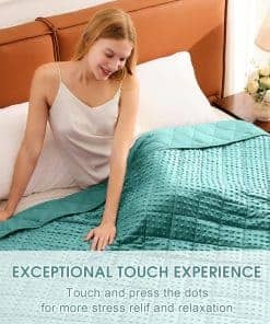 1. SUEÑO MÁGICO: Una manta ponderada se moldea a tu cuerpo como un cálido abrazo, proporcionándote un ambiente de sueño cómodo y cálido. Asegúrate de que cada mañana te llene de energía y te sientas relajado. Nuestra manta ponderada para niños de 7 lbs envuelve y calma tu cuerpo con el peso suficiente para brindarte la sensación de abrazo y seguridad para que duermas hasta la mañana. 2. TELA DEL MATERIAL: El material de la manta ponderada es poliéster de microfibra, que es más fuerte, elástico y cómodo. La manta pesada contiene cuentas de vidrio respetuosas con el medio ambiente, que son transpirables e inodoras. 3. ARTESANÍA ÚNICA: Al coser nuestras mantas ponderadas, utilizamos hilos de doble envoltura para hacer que la costura alrededor de la manta pesada sea más firme. Paso de aguja 1″/9 puntadas (incluida la longitud de la puntada de acolchado, para garantizar que las cuentas de vidrio dentro de la manta pesada no se escapen o se muevan). Un lazo en cada una de las cuatro esquinas y un lazo en cada uno de los cuatro lados (1 cm de ancho 6 cm de largo, fijado por un pespunte de vuelta), un total de 8 lazos, fácil de instalar la funda nórdica. 4. ELIGE EL TAMAÑO CORRECTO: Como una manta ponderada de tamaño para tirar, los niños se sentirán aliviados por el cálido abrazo proporcionado por su suave presión de cuentas de vidrio distribuidas uniformemente sin dolor en los músculos y huesos. Elija el tamaño correcto para tener una experiencia cómoda. La investigación recomienda que la manta ponderada para niños debe ser al menos el 10% del peso de tus niños. Si tus niños están probando por primera vez, una manta pesada más ligera es más adecuada. 5. PROMESA DEL FABRICANTE: Tenemos nuestra propia fábrica y años de experiencia nos han ayudado a producir mantas ponderadas de mejor calidad para devolver a los consumidores. Es la garantía del extremo de la producción de la manta pesada que podemos proporcionar a los consumidores una mejor garantía posventa. Si tienes problemas con los productos que has comprado, puedes contactar nuestra tienda en cualquier momento. Nuestra tienda garantizará la reposición gratuita y un servicio satisfactorio.
