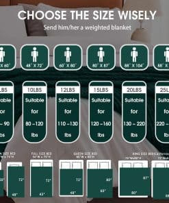 Una manta ponderada se ajusta a tu cuerpo como un cálido abrazo, te proporciona un ambiente de sueño cómodo y cálido, asegúrate de que todas las mañanas te levantes lleno de energía y relajado. Nuestra manta ponderada para niños de 7 lbs envuelve y calma tu cuerpo con suficiente peso para brindarte la sensación de abrazo y seguridad para que duermas hasta la mañana. El material de la manta ponderada es poliéster de microfibra, que es más resistente, elástico y cómodo. La manta pesada contiene cuentas de vidrio ecológicas, que son transpirables y sin sabor. Al coser nuestras mantas ponderadas, usamos hilos de doble envoltura para que la costura alrededor de la manta pesada sea más firme. Paso de la aguja 1″/9 puntos (incluyendo la longitud del punto del acolchado, para asegurar que las cuentas de vidrio dentro de la manta pesada no se muevan). Un lazo en cada una de las cuatro esquinas y un lazo en cada uno de los cuatro lados (1 cm de ancho 6 cm de largo, fijado por puntada de vuelta), un total de 8 lazos, fácil de instalar la funda nórdica. Como una manta de tamaño de lanzamiento, los niños se verían aliviados por el abrazo cálido proporcionado por su suave presión de cuentas de vidrio distribuidas uniformemente sin dolor en los músculos y huesos. Elija el tamaño correcto para obtener una experiencia cómoda. La investigación recomienda que la manta ponderada para niños debe ser como mínimo el 10% del peso de sus hijos. Si sus hijos están probando por primera vez, una manta pesada más ligera es más adecuada. Tenemos nuestra propia fábrica y años de experiencia nos han ayudado a producir mantas ponderadas de mejor calidad para devolver a los consumidores. Es la garantía del extremo de producción de la manta pesada que podemos brindar a los consumidores una mejor garantía postventa. Si tiene algún problema con los productos que ha comprado, puede contactar nuestra tienda en cualquier momento, Nuestra tienda garantizará el reemplazo gratuito y el servicio satisfactorio.