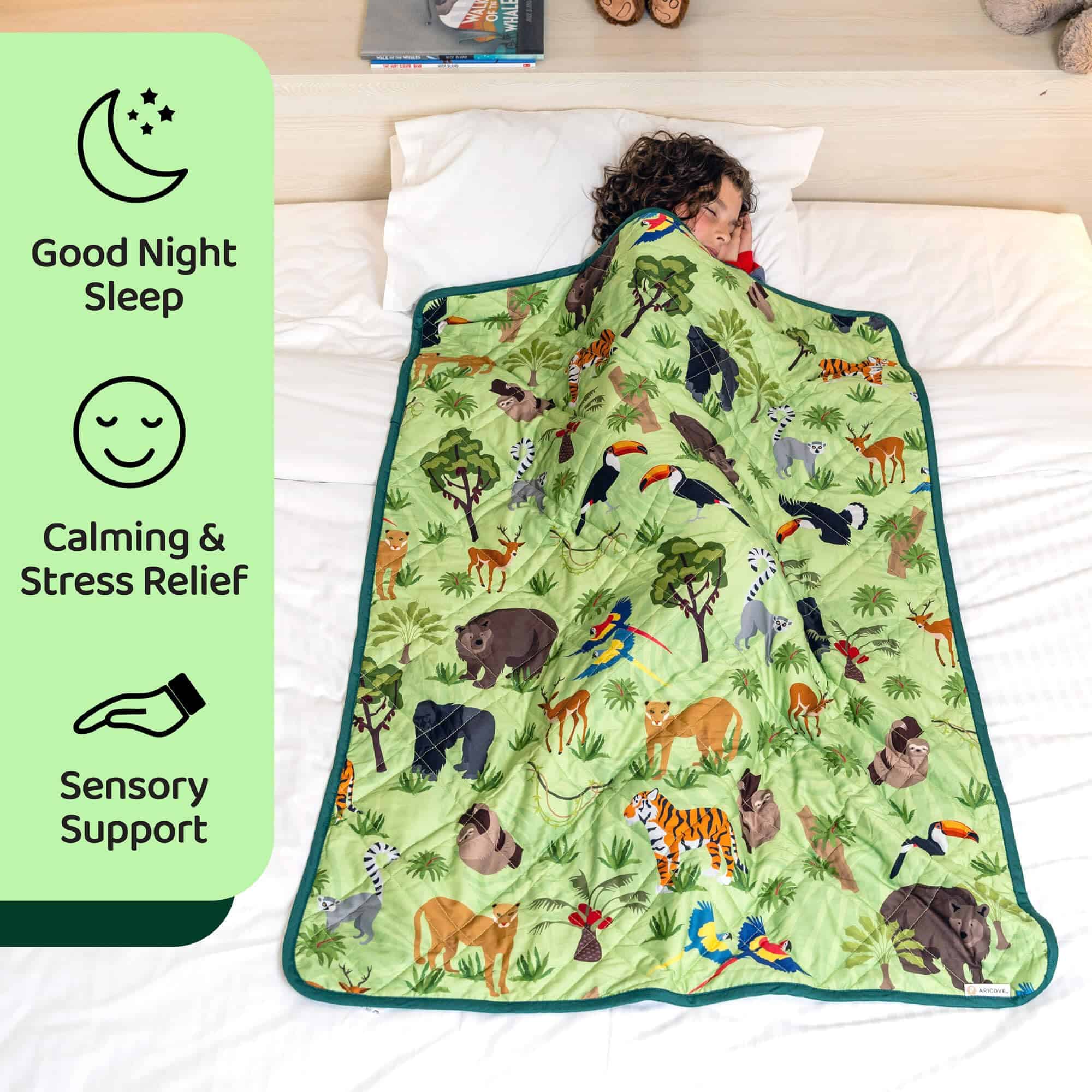 Manta Ponderada para Niños Aricove, 5 lb, -Verde Animales de
