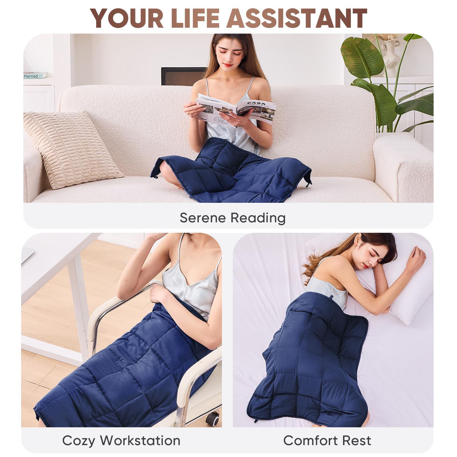 3. REGALO CREATIVO: La manta de regazo está disponible en tres tamaños: 24″ x 29″ 5lbs/7lbs y 29″ x 33″ 5lbs. Puedes elegir libremente según tus necesidades. Nuestros productos son adecuados para diferentes personas, ya sea adultos o ancianos. El diseño pequeño y exquisito es un regalo ideal para tus seres queridos. Con su diseño de alto valor y su posicionamiento de alta relación calidad-precio, también se ha convertido en un regalo entrañable para Navidad, el Día de la Madre, el Día del Padre, cumpleaños y otras festividades.