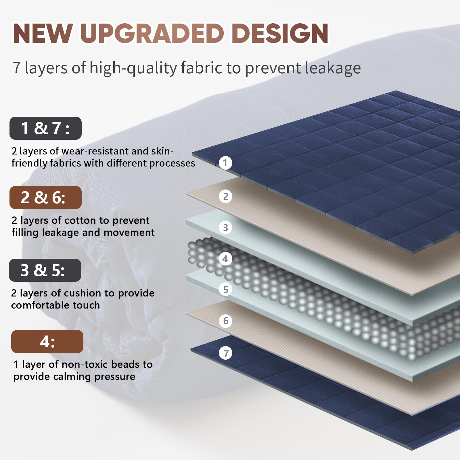 2. TELA MATERIAL: La superficie de la almohadilla de regazo ponderada está hecha de tela de microfibra de poliéster, que es cómoda y transpirable. La capa interior de la manta para las rodillas está rellena con material de algodón ligero, que es suave al tacto y contiene cuentas de vidrio respetuosas con el medio ambiente, que son seguras e inodoras. Cuando te sientas durante mucho tiempo en el trabajo o te relajes en casa, deja que tus rodillas y cintura se sumerjan en un ambiente cálido y confortable, y úsalo durante mucho tiempo sin cargas.