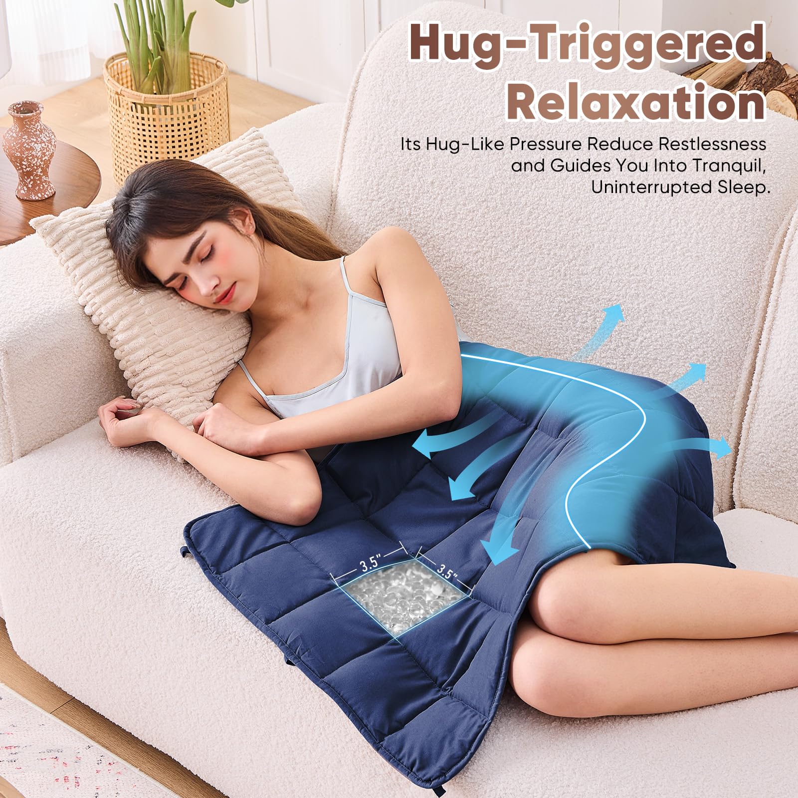 Manta Ponderada para Regazo de Adultos 7lbs, -Azul Marino