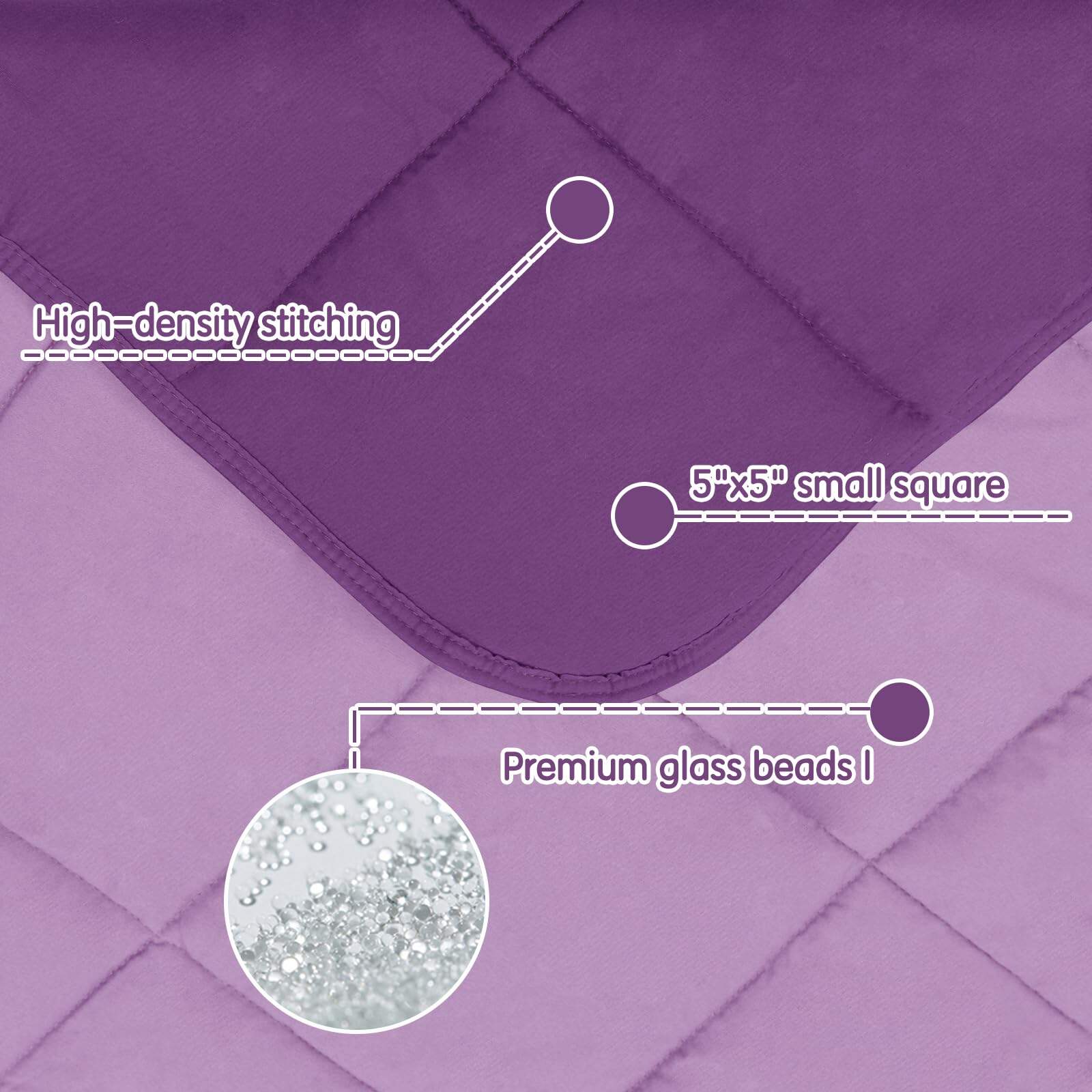 4. COSTURA AJUSTADA Y DURADERA: Nuestra manta ponderada está compuesta por compartimentos lo suficientemente pequeños de 5″x5″ cosidos por 15000 puntadas de alta densidad para mantener las cuentas de vidrio siempre en su lugar en el cuadrado todo el tiempo para brindarle una manta ponderada más duradera sin fugas de cuentas de vidrio.