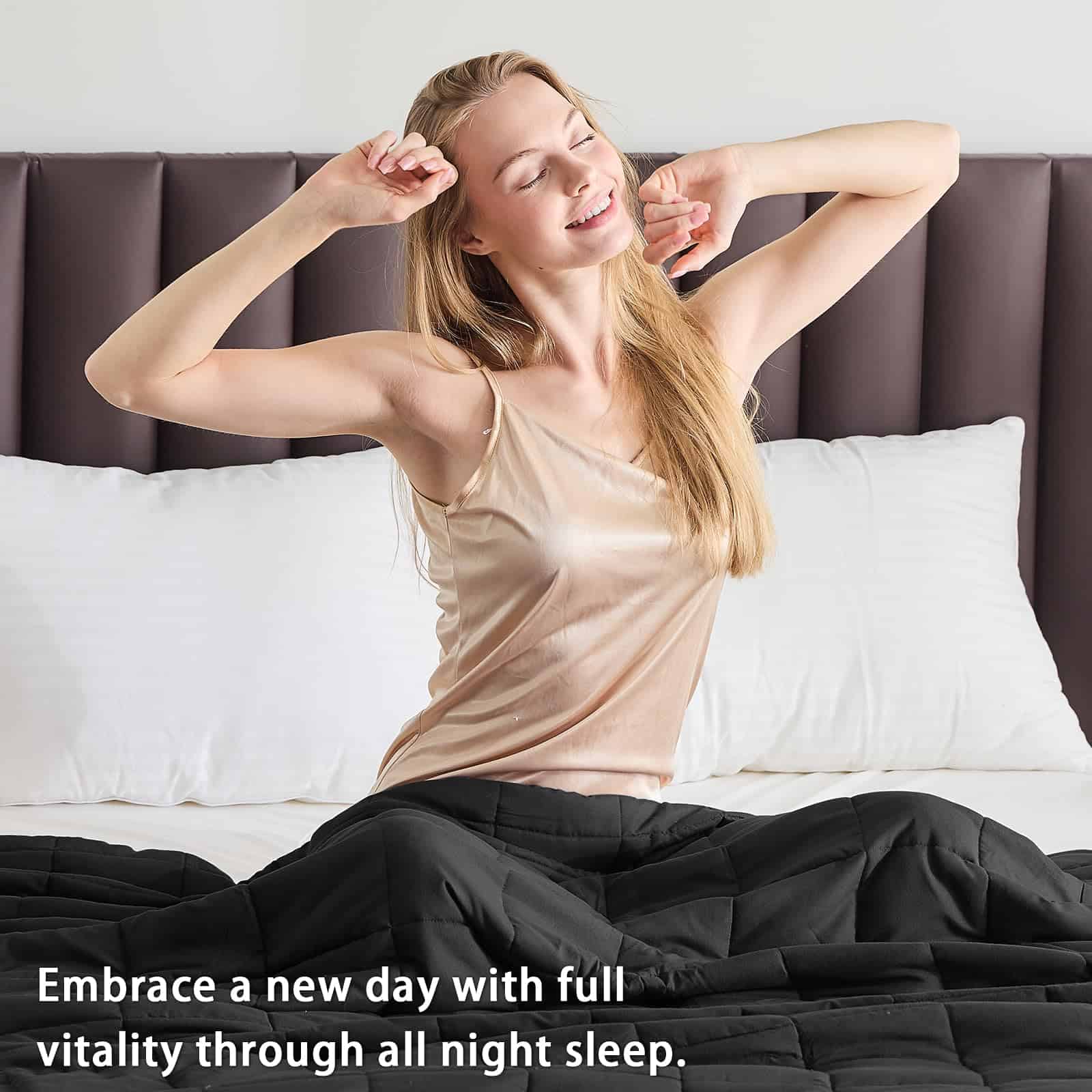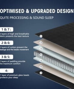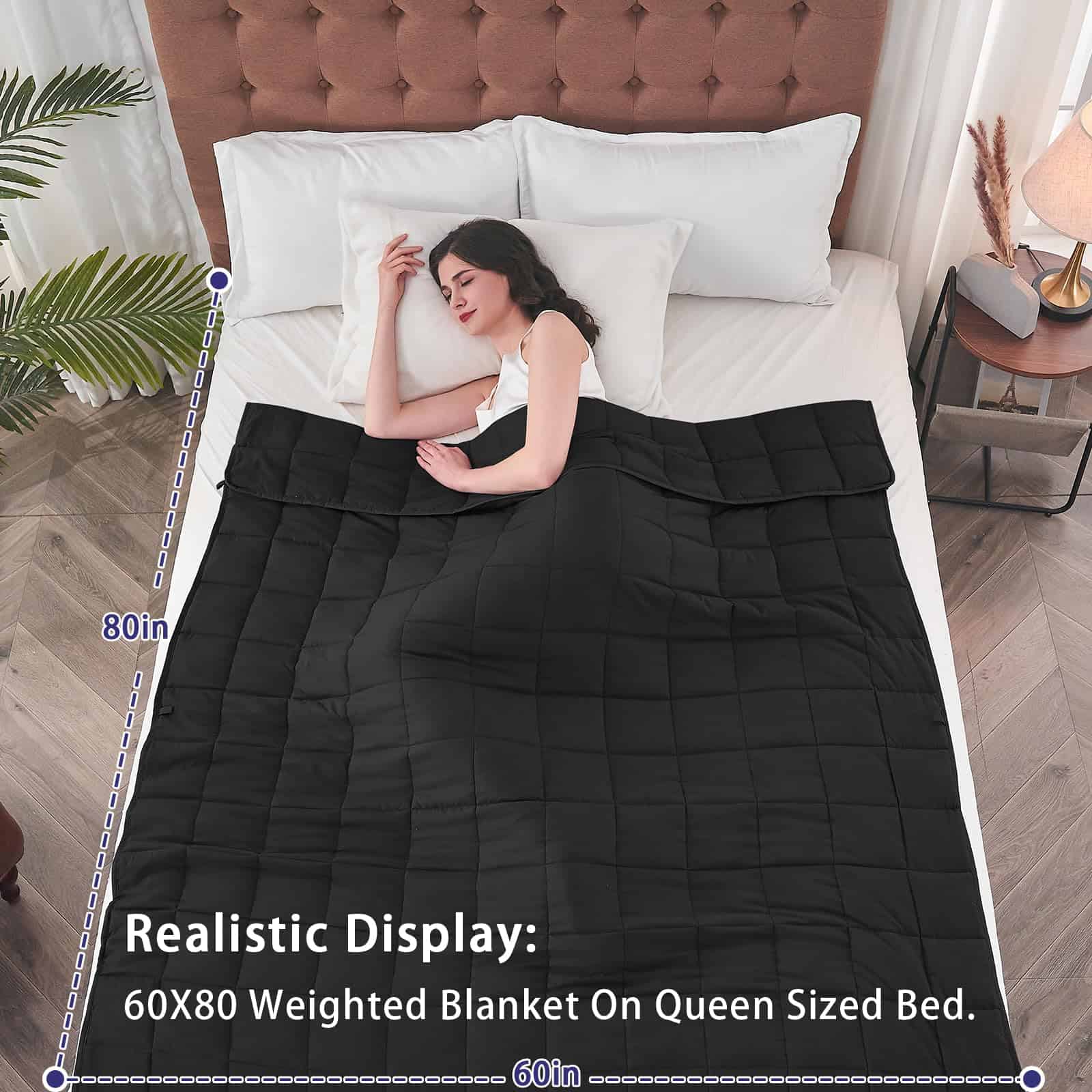 1. ELIGE EL TAMAÑO CORRECTO: Se recomienda una manta ponderada que tenga el 10% de tu peso corporal. La manta ponderada de 20 libras tamaño queen es perfecta para adultos de 190-210 libras, también es adecuada para parejas, puedes usarla en tu cama tamaño queen. 2. SOBRE EL COLCHÓN: Las mantas ponderadas yescool para adultos te mantienen durmiendo toda la noche. Debido a su peso suficiente, la manta ponderada tamaño queen se ajustará muy bien a tu cuerpo, lo que significa que estará justo encima del colchón de tu cama tamaño queen, SIN SOBRESALIR, y puede darte la impresión de que es más pequeña. 3. COSTURA APRETADA Y DURADERA: Nuestra manta ponderada para mujeres y hombres está compuesta por compartimentos suficientemente pequeños de 5″x5″ cosidos con 15000 puntadas de alta densidad para mantener las cuentas de vidrio siempre en su lugar y brindarte una manta ponderada más duradera sin pérdida de cuentas de vidrio. 4. LAVABLE EN MÁQUINA: Las mantas ponderadas para adultos de 20 libras se pueden lavar a máquina en agua fría en el programa suave, secar al aire. Nuestras mantas ponderadas para adultos pueden hacer que las cuentas de vidrio permanezcan en su lugar y distribuidas de manera uniforme en ella cuando laves la manta ponderada para adultos de 20 libras en una máquina, lo cual se deriva de nuestros 50 experimentos de lavado a máquina. 5. IDEA DE REGALO DECENTE: Recibir regalos es divertido, pero encontrar ideas de regalos, errrr. no tanto. ¿Qué podría superar a una manta ponderada utilizada para cada sueño como regalos para hombres, mujeres, parejas, todos, Día de la Madre? Simplemente entregando regalos y esperando su expresión de sorpresa.