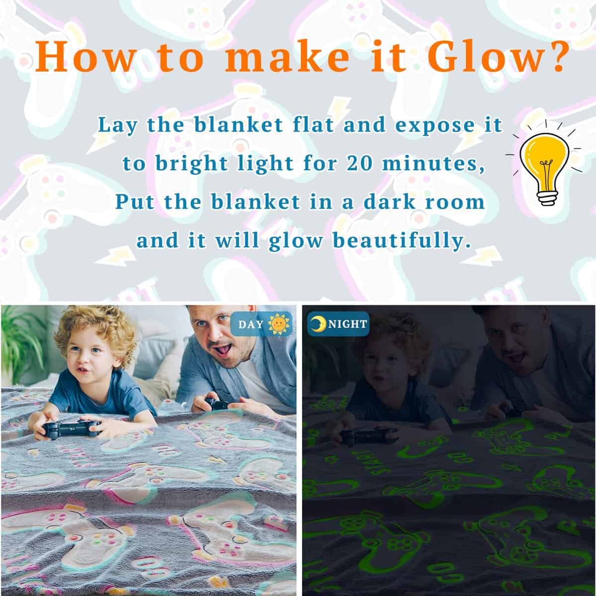 1. Material y Diseño: La manta que brilla en la oscuridad está hecha de fibra de poliéster de alta calidad que absorbe y almacena la energía lumínica. La manta luminosa es misteriosa e interesante. Simplemente expón la manta a una fuente de luz brillante o al sol durante unos 20-30 minutos, y luego llévala a una habitación oscura para ver la magia. Cuanto más brillante sea la luz, más fuerte brillará la manta en la oscuridad. 2. Súper Suave y Acogedora: La manta es muy fina y suave, ofreciendo comodidad suave para todos los niños pequeños, chicos, chicas y adultos. La manta luminosa es ligera y transpirable. El tamaño de 50″ x 60″ es adecuado para personas de todas las edades, diseñada para brindar comodidad, esta será tu nueva cosa favorita para usar en noches acogedoras o mañanas frías. 3. Multi-funcional y para todas las estaciones: Las mantas súper suaves y luminosas son universales en todas las estaciones. Se pueden usar como manta de cama, manta chal, manta de aire acondicionado, manta de siesta, manta para niños, manta de viaje, manta de camping, manta de picnic, manta de swaddle o tapete de juego. Por lo tanto, es un gran regalo para amigos, chicas, chicos, niños, adolescentes, novios, novias, etc. Lanza esto sobre tu cama para disfrutar de una tranquila siesta o en el sofá de tu sala mientras ves tu programa de televisión favorito. 4. Regalo Perfecto para Todas las Edades: Regalo perfecto para cumpleaños, Navidad, Halloween, Pascua, Acción de Gracias, Día de los Niños u otras ocasiones. Esta manta luminosa es un regalo neutral en cuanto a género para chicos, chicas, niños, adolescentes y mujeres a quienes les encantan las cosas brillantes. Las mantas que brillan en la oscuridad inspirarán ideas divertidas para que los chicos, chicas y niños pequeños disfruten de mantas mágicas por la noche. 5. Cuidado Fácil: Las mantas y tiras brillantes con la mejor calidad para su uso. No se desvanecerán, arrugarán ni perderán pelo. Solo mételas en tu lavadora en el ciclo de lavado suave/frío y luego sécalas al aire o en ciclo suave a baja temperatura para el mejor servicio a largo plazo. Lávalas solas para evitar la abrasión. La manta mágica brillará normalmente después del lavado.