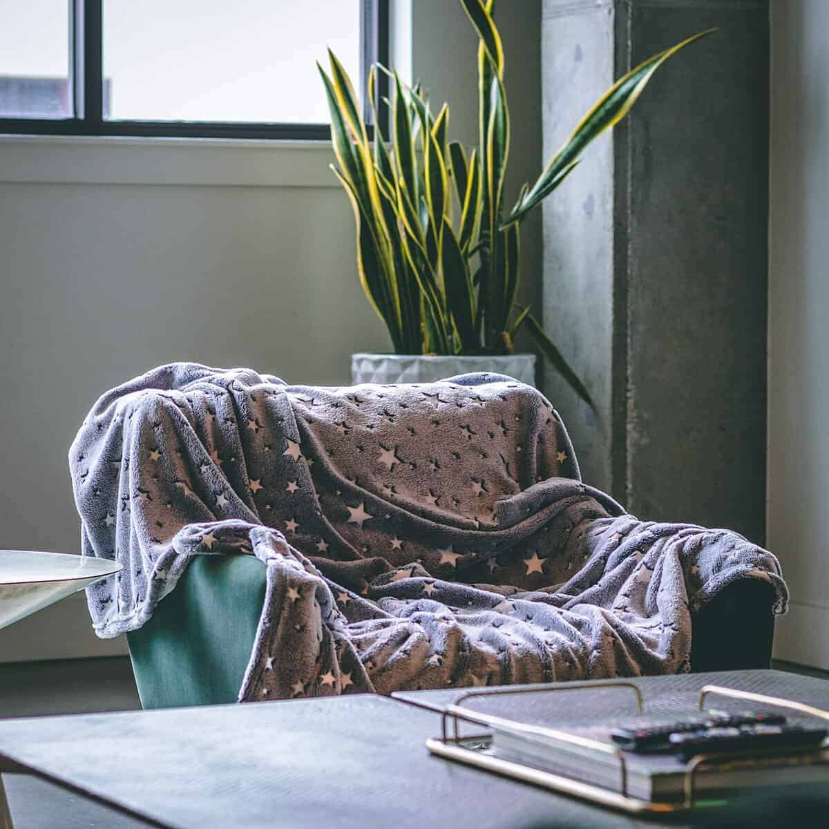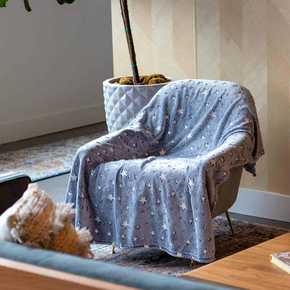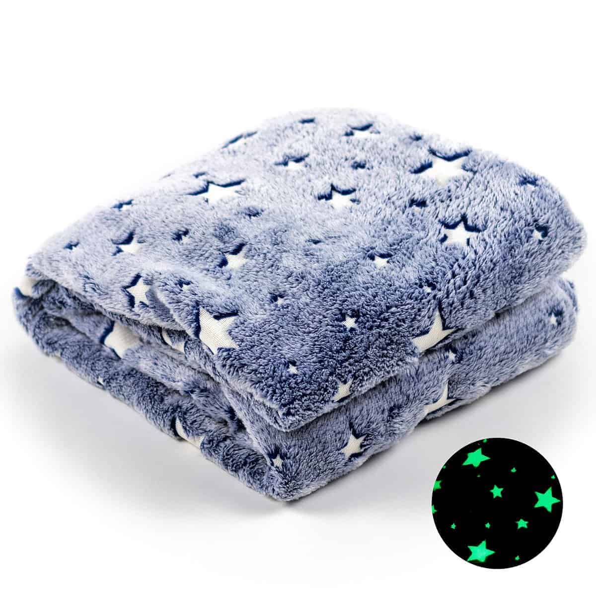 Estiloso y de Moda – La manta que brilla en la oscuridad está de moda ahora y no hay mejor manera de unirse al juego que con nuestra nueva manta de felpa que brilla en la oscuridad! Dale a tus fotos ese toque extra con la adición de brillantes estrellas que brillan, ya sea en el fondo o como parte de la atracción principal.