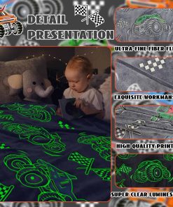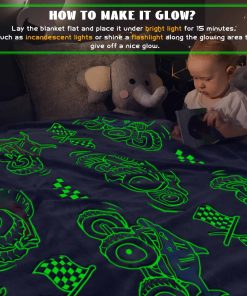 Manta que Brilla en la Oscuridad para Niños con Diseño de Camión: Esta manta de camión para niños está hecha de poliéster de microfibra, lo que la hace suave y delicada al tacto. Es apta para niños de 2 a 12 años de edad. Simplemente exponga la manta al sol o a una fuente de luz brillante durante 15 minutos y brillará durante más de 5 horas. Cuanto más tiempo de exposición, más brillante será la luminosidad. Los niños disfrutarán de la mágica luminosidad en la oscuridad y agregarán diversión a la noche. La manta de camión es un regalo de cumpleaños único para niños amantes de los camiones, excavadoras, cemento y sitios de construcción. Además, es ligera y portátil, perfecta para uso en interiores y exteriores. Con un tamaño de 60″ x 80″, es lo suficientemente grande para ser utilizada como manta de sofá, para una siesta en la habitación, para relajarse en el auto, para actividades al aire libre, para campamentos o picnics, entre otros. También es fácil de limpiar, ya que puede ser lavada en lavadora, a mano o en seco, sin perder su suavidad ni su propiedades de brillo en la oscuridad después de meses de lavado.