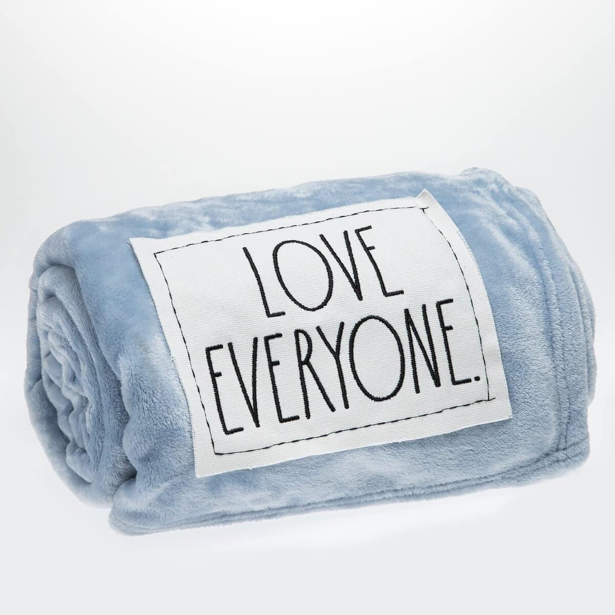 Rae Dunn presenta esta hermosa manta decorativa en un suave tono azul claro, perfecta para utilizar en la cama o el sofá. Con el mensaje ‘Love Everyone’ bordado en ella, esta manta de felpa es ideal para mantenerte abrigado y acogedor en cualquier ocasión. Medidas: 50 pulgadas x 60 pulgadas. Incluye percha de madera para un fácil almacenamiento.
