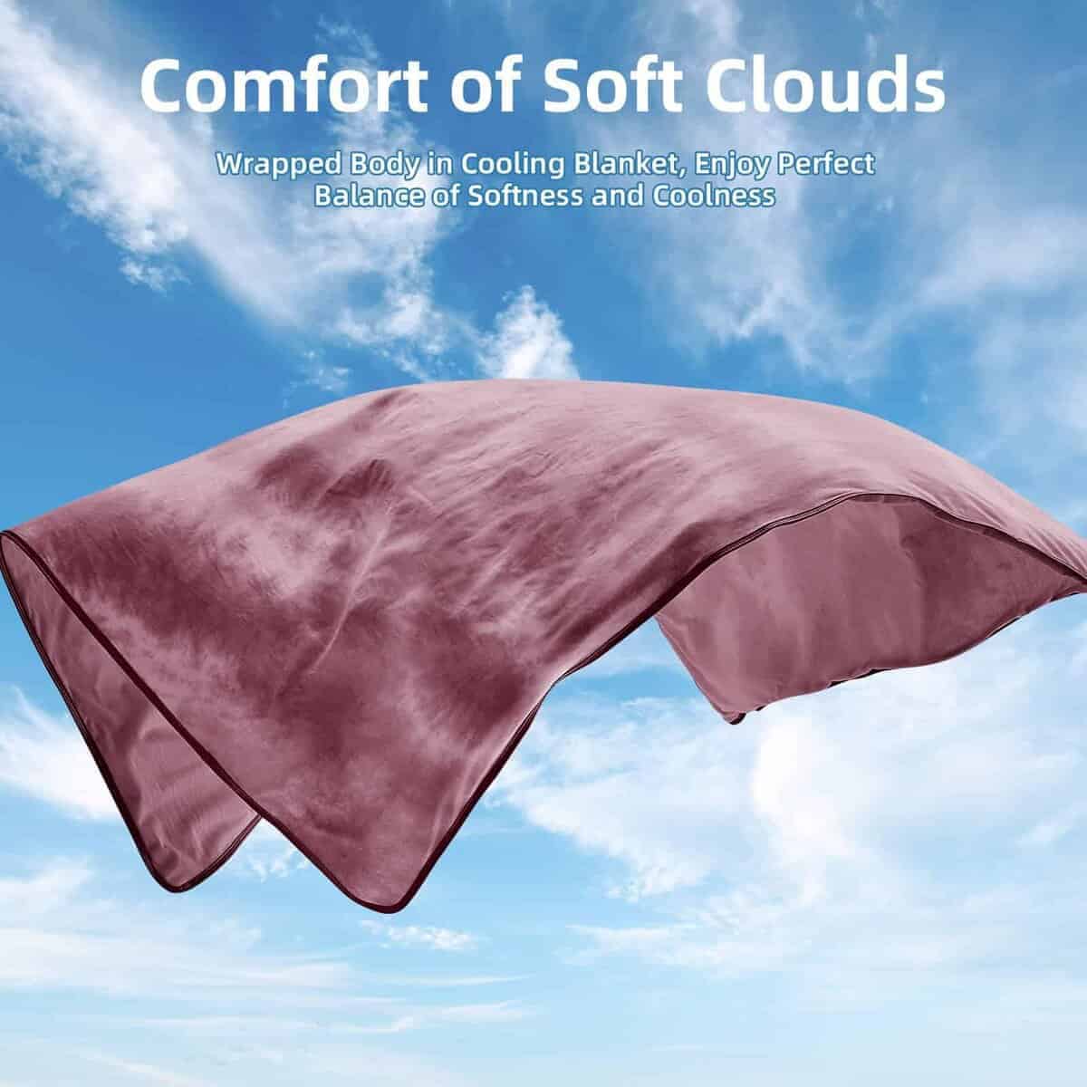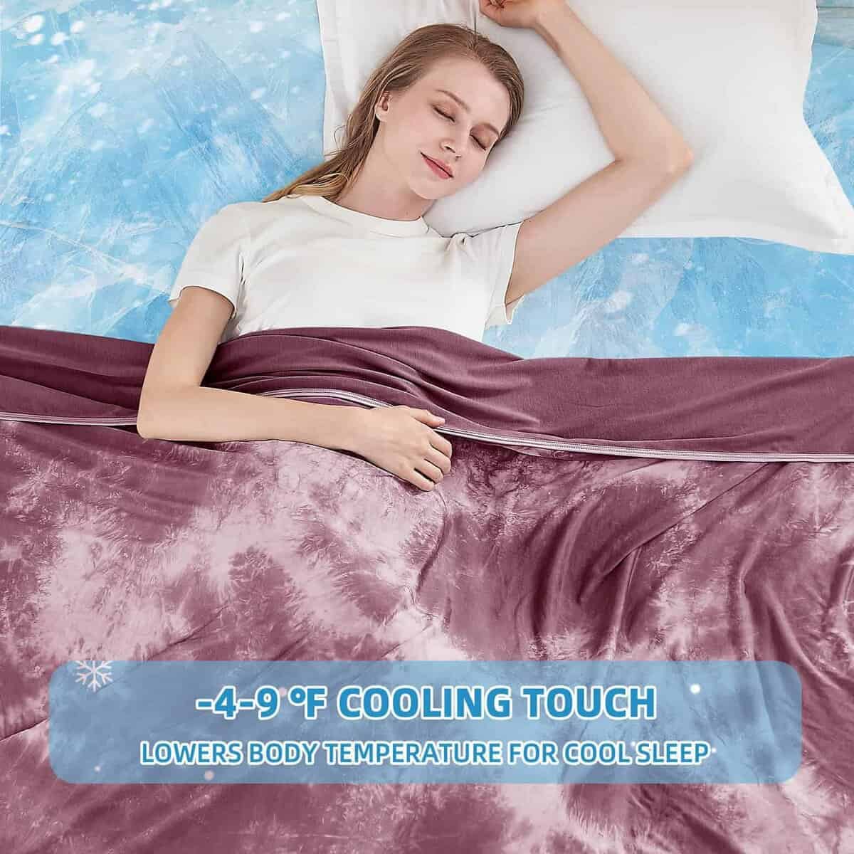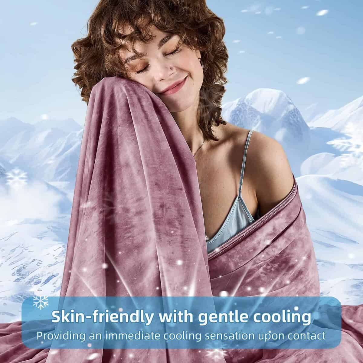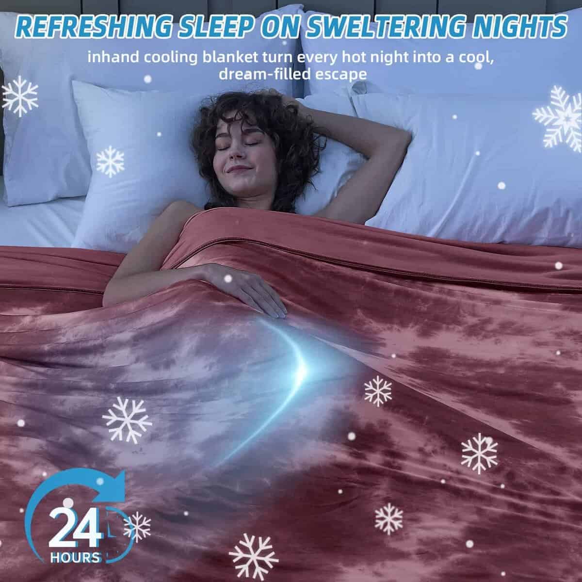 A COOL NIGHT’S SLEEP: Our special arc-chill cooling fiber ice blanket (q-max>0.45) can brilliantly absorb your body heat, lower skin temperature by 4 to 9 instantly, keep skin cool until you wake up. On sweltering nights, you can sleep comfortably under cooling blanket queen size without breaking out in a sweat. It is a perfect cooling bedding blankets for hot sleepers, hot flashes, and night sweaters.