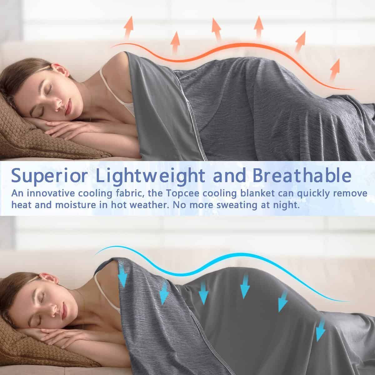 4. Viaje, Oficina, Hogar: La Manta de Enfriamiento Topcee viene en 2 tamaños: 50×70 pulgadas y 60×90 pulgadas. La manta de 50×70 pulgadas es tan ligera y fácil de llevar que puedes llevarla a cualquier lugar, incluso si necesitas viajar en diferentes vehículos como el coche, avión, barco, tren u otros. La de 60×90 pulgadas es ideal para camas dobles y completas. Siempre puedes confiar en que estas mantas de enfriamiento de Topcee son definitivamente tu mejor elección, ya sea en la habitación de tus niños, en tu coche o en tu viaje de camping y negocios.