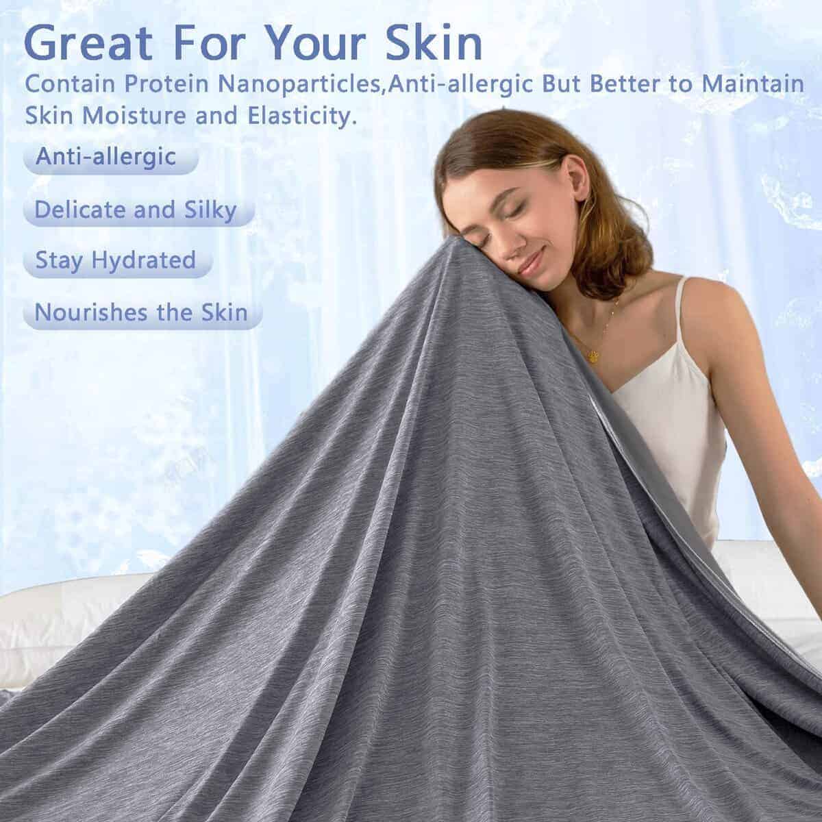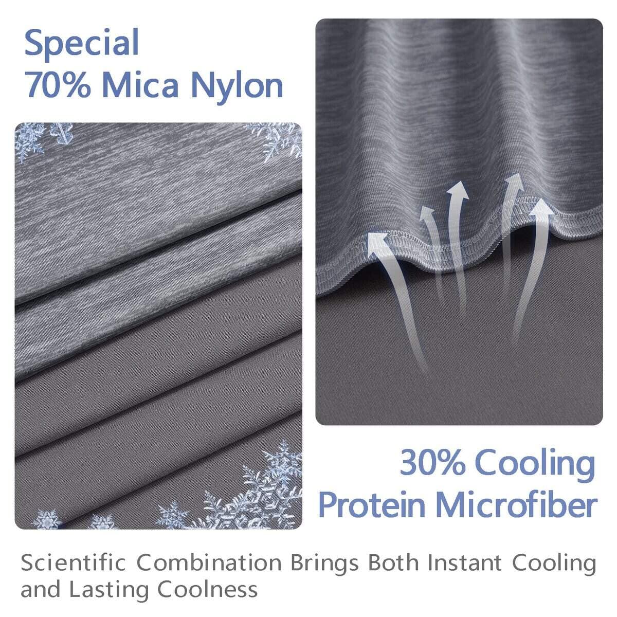 3. Diseño de Enfriamiento de Doble Cara: La parte superior está hecha de un 70% de nailon de mica especial con un 30% de microfibra de proteína de enfriamiento, esta combinación científica perfecta aporta frescura duradera e instantánea. Las mantas de enfriamiento hacen que las personas se sientan más cómodas, más transpirables y más frescas en los días insoportablemente calurosos de verano. El fondo está hecho de un 100% de microfibra de proteína de enfriamiento, que es suave, amigable con la piel, cómodo y transpirable, perfecto para primavera y otoño.