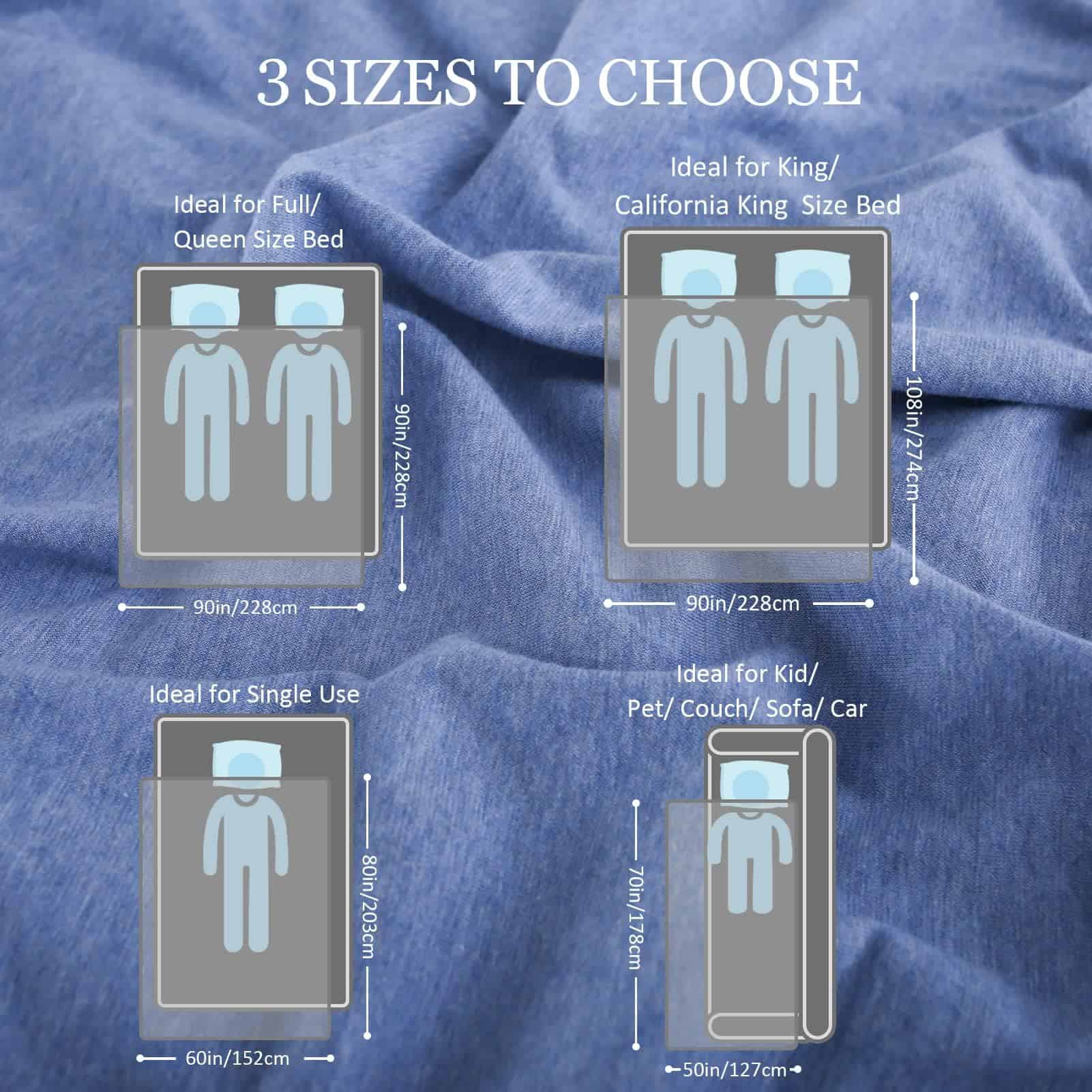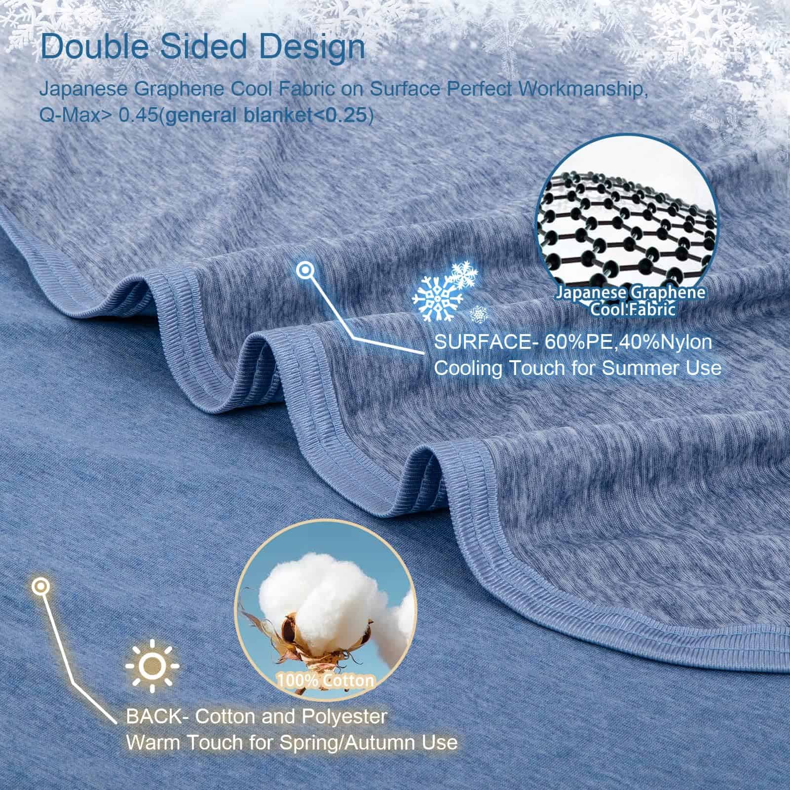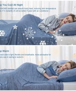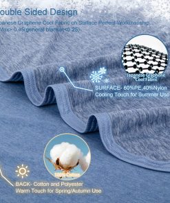 Manta refrigerante CHOSHOME para dormir en verano ligera, ideal para insomnio por calor y sudores nocturnos, manta suave para cama, tamaño individual, azul. La manta para cama CHOSHOME en un lado es de tela refrigerante, que ayuda a disipar el sudor; Y el tacto es suave y liso como la seda; Mientras que el otro lado está hecho de algodón natural que ofrece un efecto de calidez en todas las estaciones. Hecho de nylon de mica, suave, transpirable y amigable con la piel; te ayuda a mantenerte fresco al absorber el calor corporal en las noches calurosas de verano; Q max superior a 0,45, lo normal es solo 0,2, ayuda a las personas con sudores nocturnos y que sienten calor a mantenerse frescos. La manta refrigerante es más ligera que el edredón y el cobertor; Es pequeña y ligera y se puede llevar a donde vayas, como en la oficina, aviones, trenes, automóviles, barcos y hogares. La manta refrigerante de verano CHOSHOME se puede lavar a mano y a máquina; Recomendamos colocar la manta en una bolsa de lavandería para evitar enredos y daños; NO COLOCAR EN LA SECADORA. Esta manta refrigerante está diseñada para su uso durante todo el año en 4 tamaños; Tamaño de lanzamiento, tamaño individual, tamaño completo, tamaño king; Es una excelente capa adicional para tu cama para mantenerte fresco en todo momento