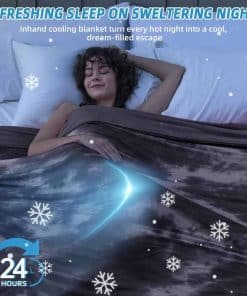 1. UNA NOCHE DE SUEÑO FRESCO: Nuestra manta especial de fibra de enfriamiento con tecnología arc-chill (q-max>0.45) puede absorber brillantemente el calor de su cuerpo, reducir la temperatura de la piel de 4 a 9 instantáneamente, mantener la piel fresca hasta que te despiertes. En noches de bochorno, puedes dormir cómodamente bajo una manta refrigerante tamaño queen sin sudar. Es una manta de cama refrigerante perfecta para personas calurosas, sofocos y sudores nocturnos.
