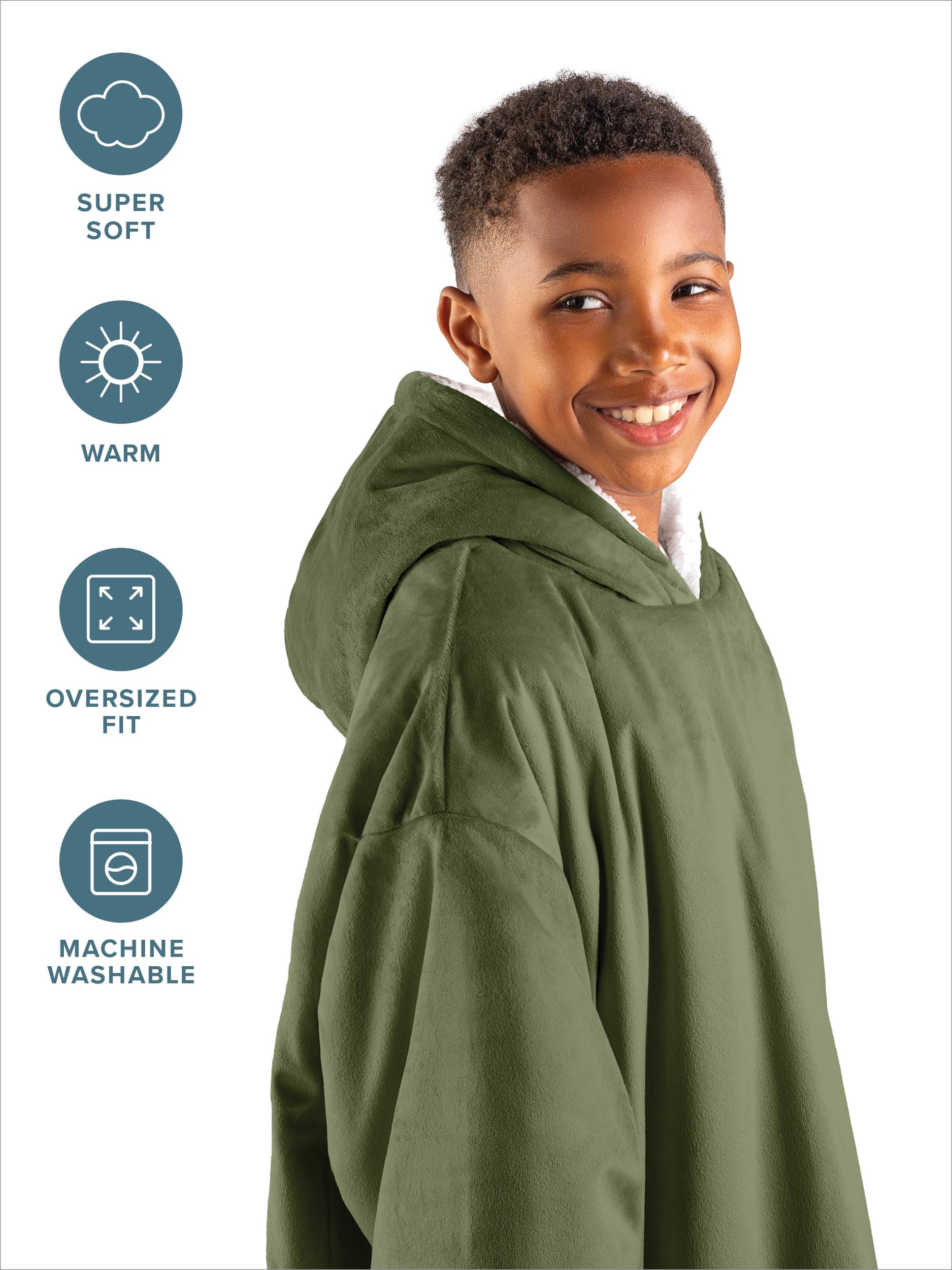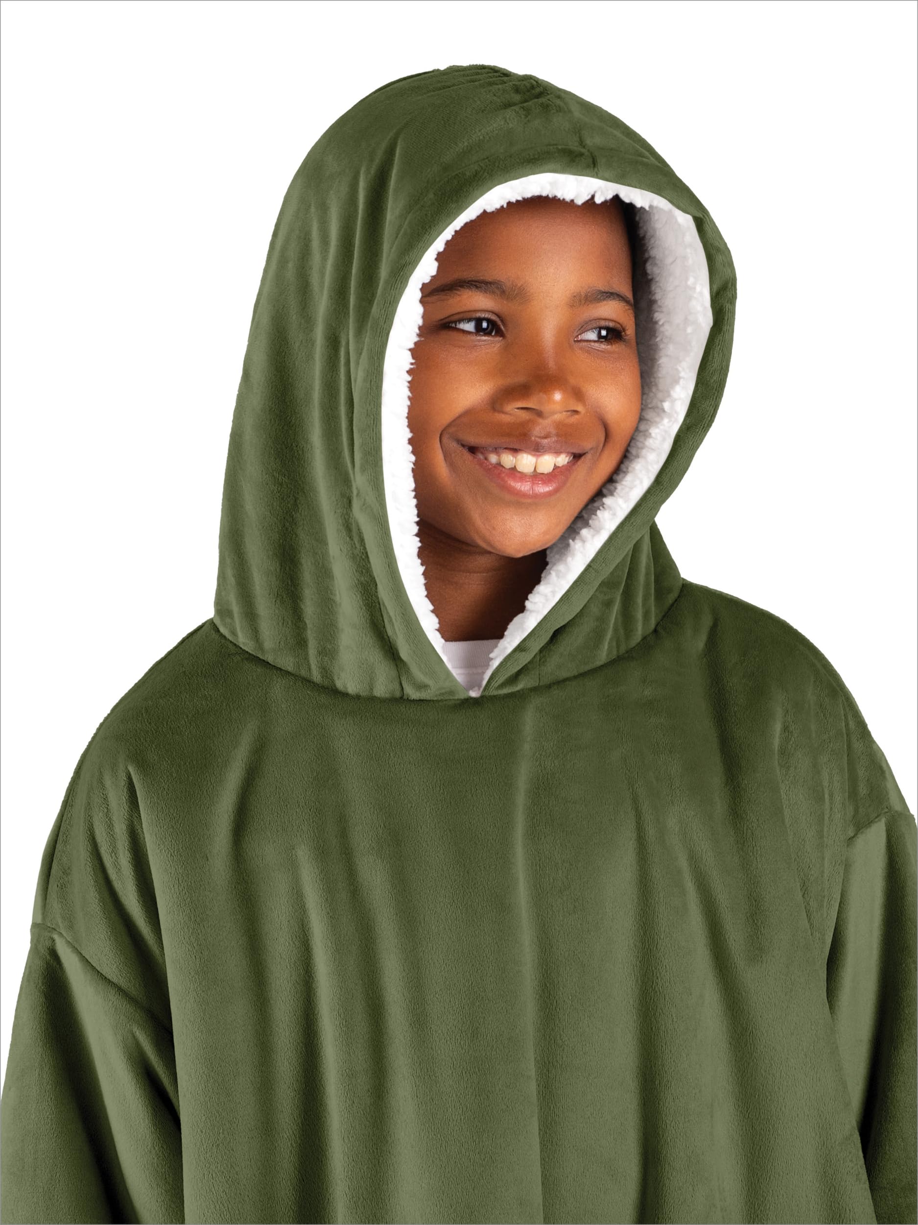 2. TODO EXTRAGRANDE: Con una capucha grande y esponjosa, bolsillos profundos, mangas extragrandes y un dobladillo alto-bajo, nuestra Homey cuenta con un suave microplush de felpa por fuera y sherpa esponjoso por dentro para mayor calidez y comodidad. Nuestra manta wearable es perfecta para relajarse en casa mientras ves tus programas favoritos, pasear al perro, llevarla al próximo evento deportivo al aire libre, a una pijamada, o incluso a la escuela. ¡Homey es perfecta para toda la familia! ¡Las fotos familiares a juego nunca han sido tan divertidas!