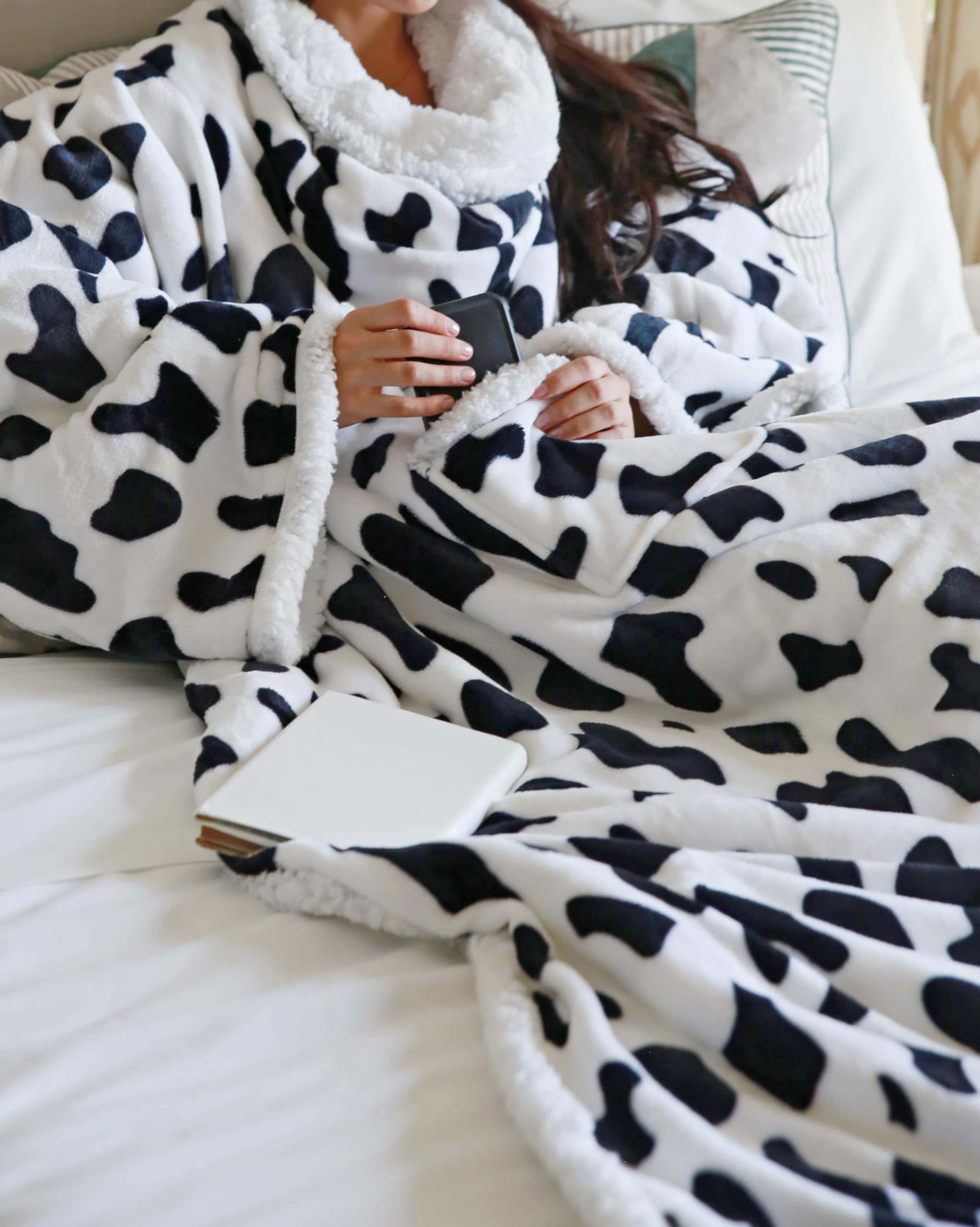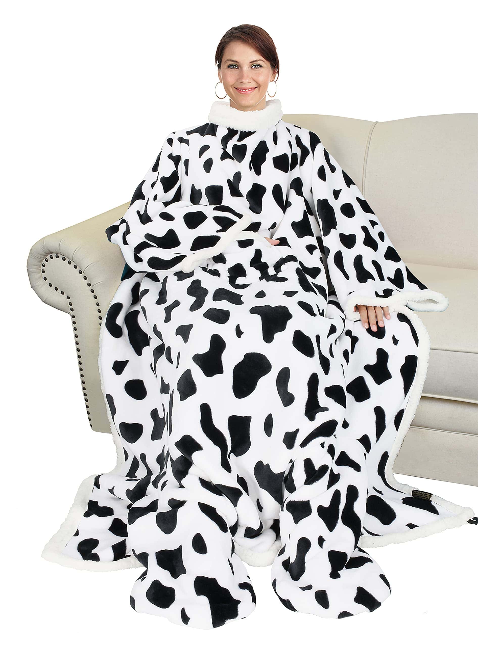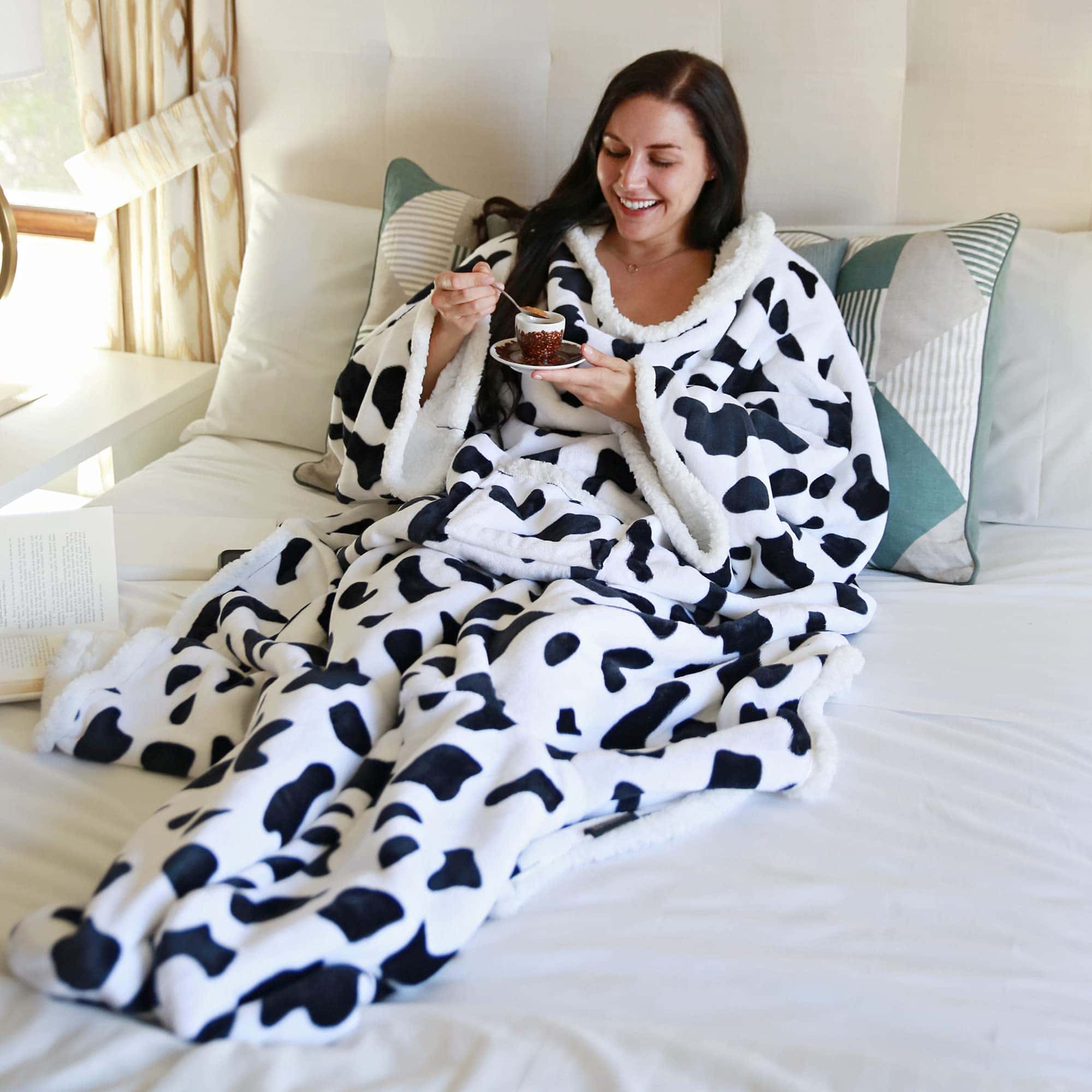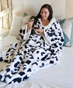 Manta Sherpa con Estampado de Vaca Catalonia con Mangas y