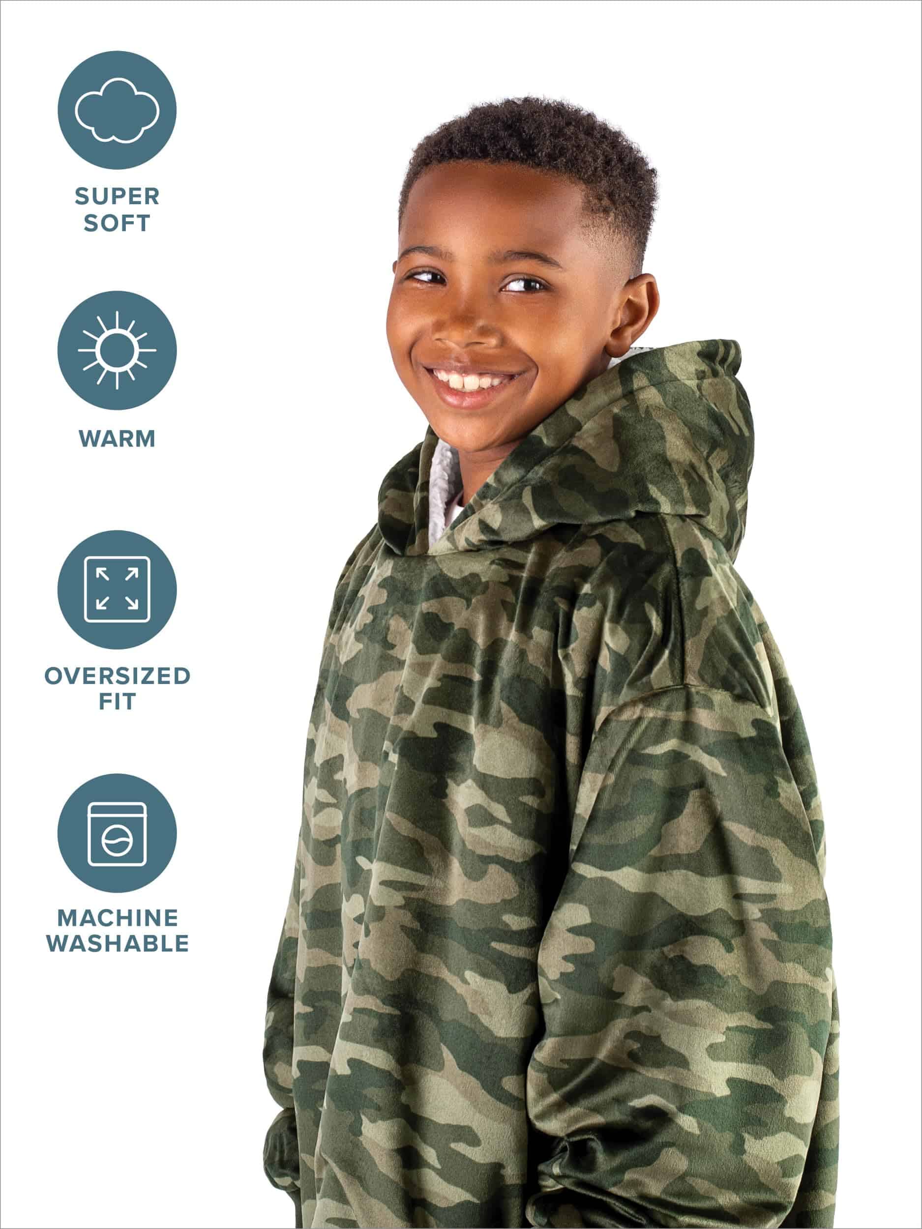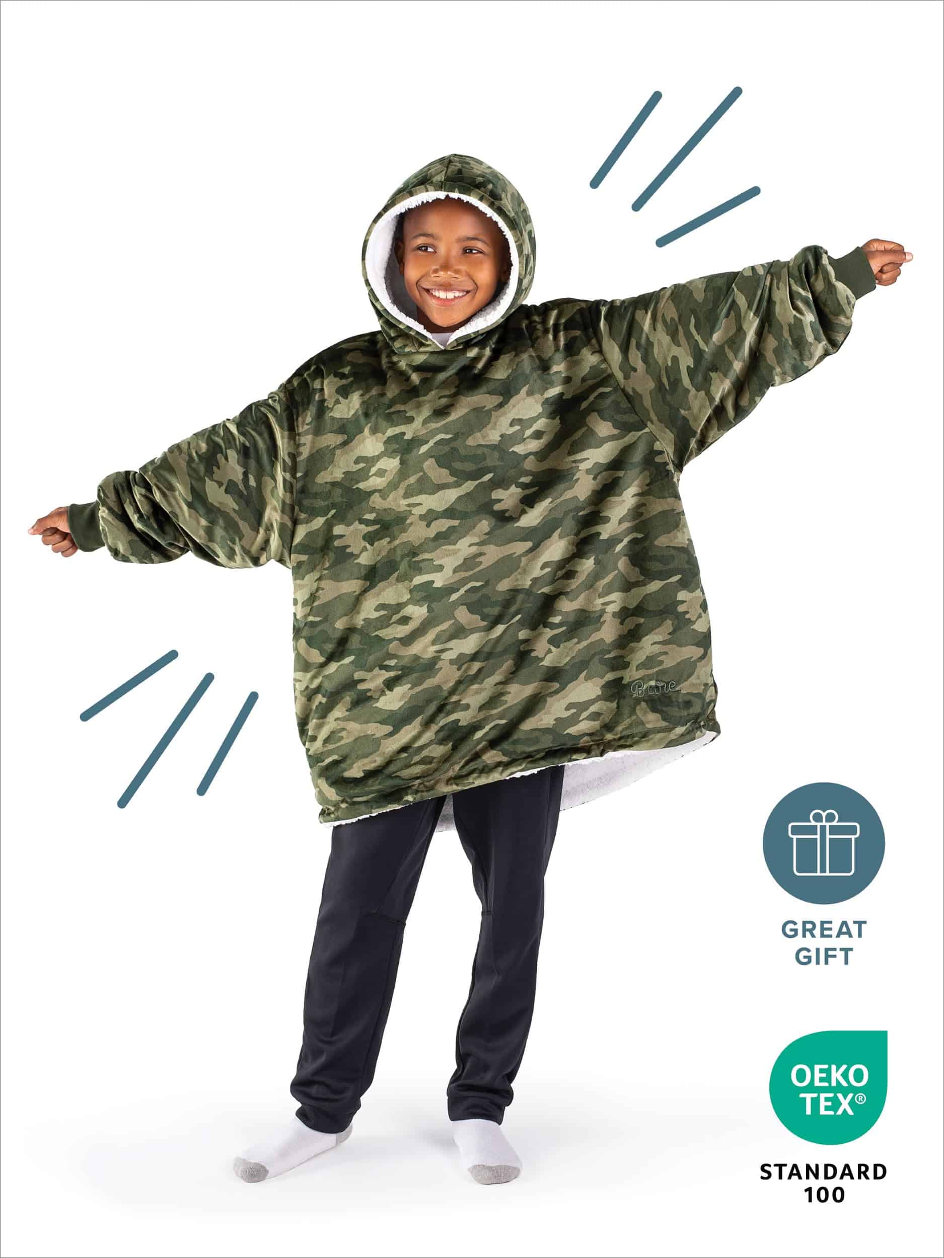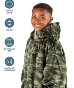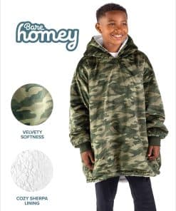 1. EL BARE HOMEY: ¿Es una Sudadera Gigante? ¿Una Chaqueta Manta? ¿O una Manta con Capucha? Llámalo como quieras, ¡Es un multiusos! Si sueles tener frío, ¡Homey es la solución para ti! Disponible en tamaño infantil: (28″ Ancho x 28″ Largo con una longitud de manga de 24″).