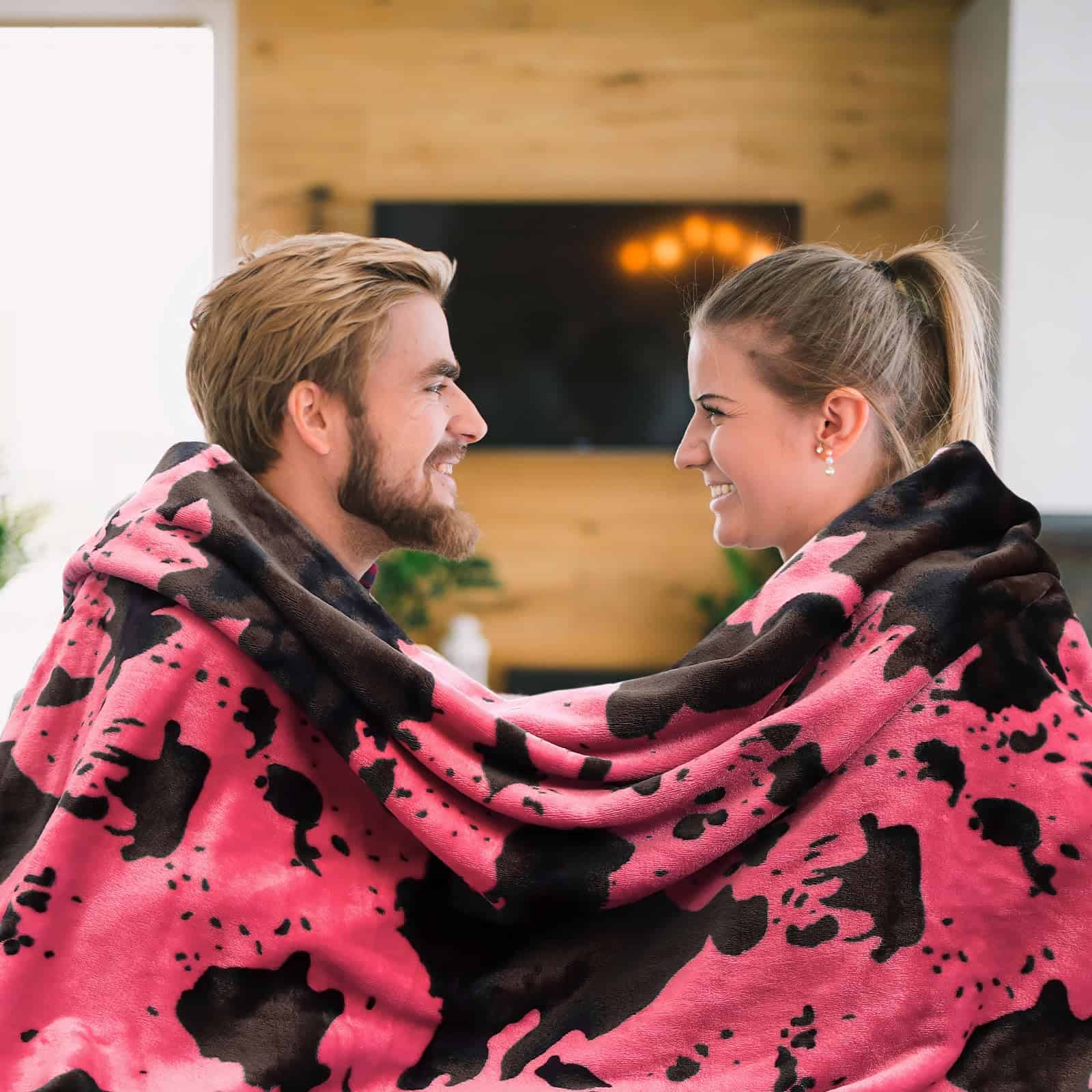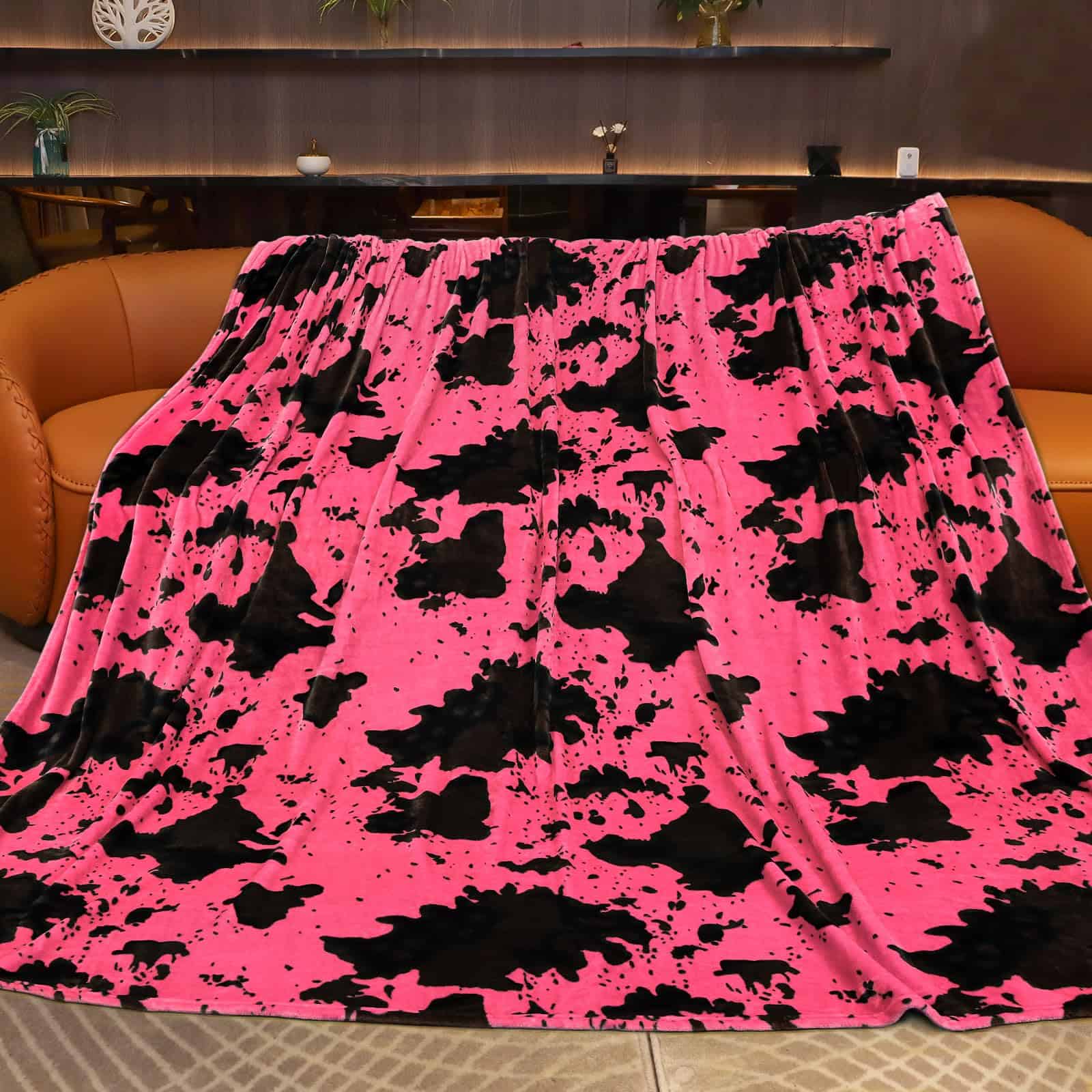 Manta Suave Estampado de Vaca Rosa Tamaño King – Manta de