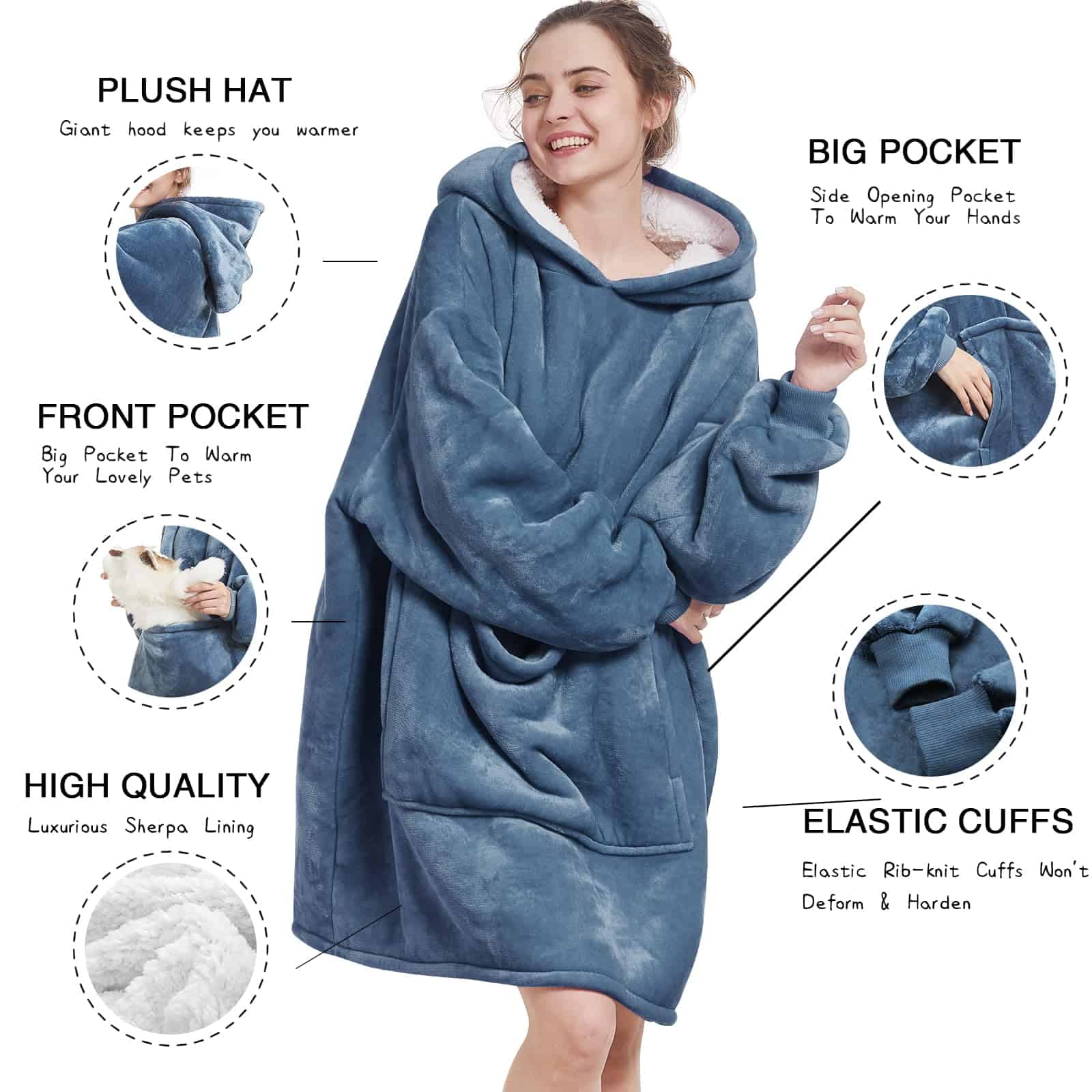 El tamaño perfecto: La manta con capucha extragrande es cómoda y está diseñada para adaptarse a todas las formas.