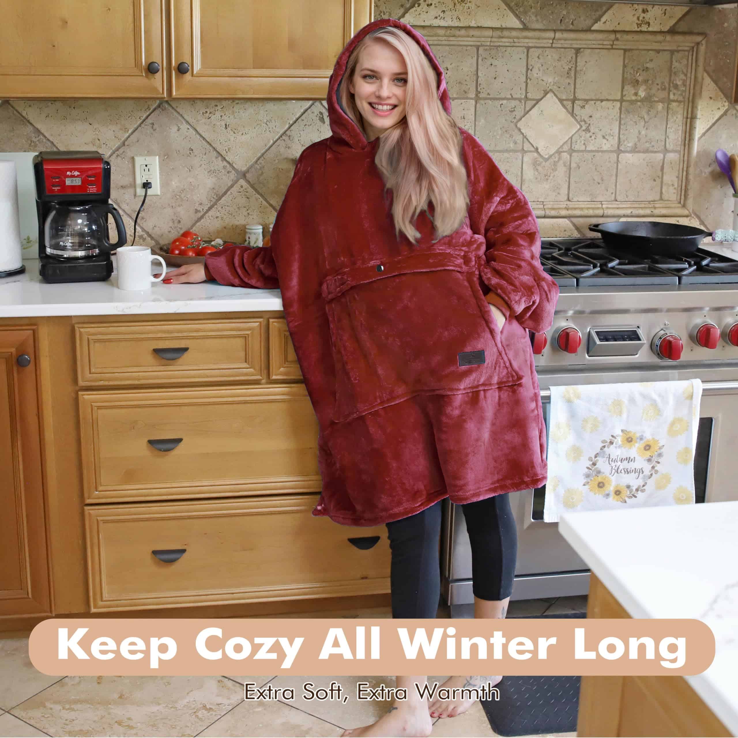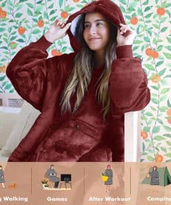1. MANTA SUDADERA EXTRA GRANDE para CASA y EXTERIORES – Esta manta sudadera extra grande con mangas largas te cubre por completo. Te mantiene sorprendentemente cálido y acogedor mientras te relajas en casa, tomas tu café por la mañana afuera, en un evento deportivo, en la oficina, para cualquier camping, concierto o actividades al aire libre. También nuestra calidad es superior a las demás marcas disponibles. 2. SUAVE Y CÁLIDA MANTA SUDADERA – La manta sudadera extra grande está hecha con 200 GSM de un irresistiblemente suave rostro de polar de poliéster, y es extremadamente grande para cubrir tu cuerpo en los 230 GSM de esponjosa Sherpa, te mantiene cálido de pies a cabeza mientras ves TV o lees en la cama, sofá o afuera, etc. 3. UN ENORME BOLSILLO Y CAPUCHA – Manta sudadera de sherpa súper suave con un enorme bolsillo que puede almacenar teléfonos, bocadillos, controles remotos y mucho más. Todas las familias definitivamente amarán esta manta sudadera extra grande mientras ven juegos de fútbol en casa, simplemente acurrúquese en el sofá y coma bocadillos del enorme bolsillo. ¡Qué vida acogedora!. 4. IDEA DE REGALO PERFECTA – ¡Un gran regalo para alguien a quien le gusta estar acogedor! Regalos perfectos para mamás, regalos para papás, regalos para esposas, regalos para esposos, regalos para hermanas, regalos para hermanos, regalos para primos, regalos para amigos y regalos para estudiantes en Navidad, Pascua, San Valentín, Día de Acción de Gracias, Nochevieja, cumpleaños, despedidas de soltera, bodas, aniversarios, regreso a clases, graduación y regalos prime. 5. FÁCIL CUIDADO y UN TAMAÑO SE AJUSTA A LA MAYORÍA – Esta manta sudadera de sherpa extra grande es de talla única para adultos, mujeres, hombres, adolescentes y niños. El tamaño específico es 36 (L) x 34 (A); Manga 25 ; Bolsillo 23 (A) x 13 (L). Lavar a máquina en frío, secar a temperatura baja por separado.