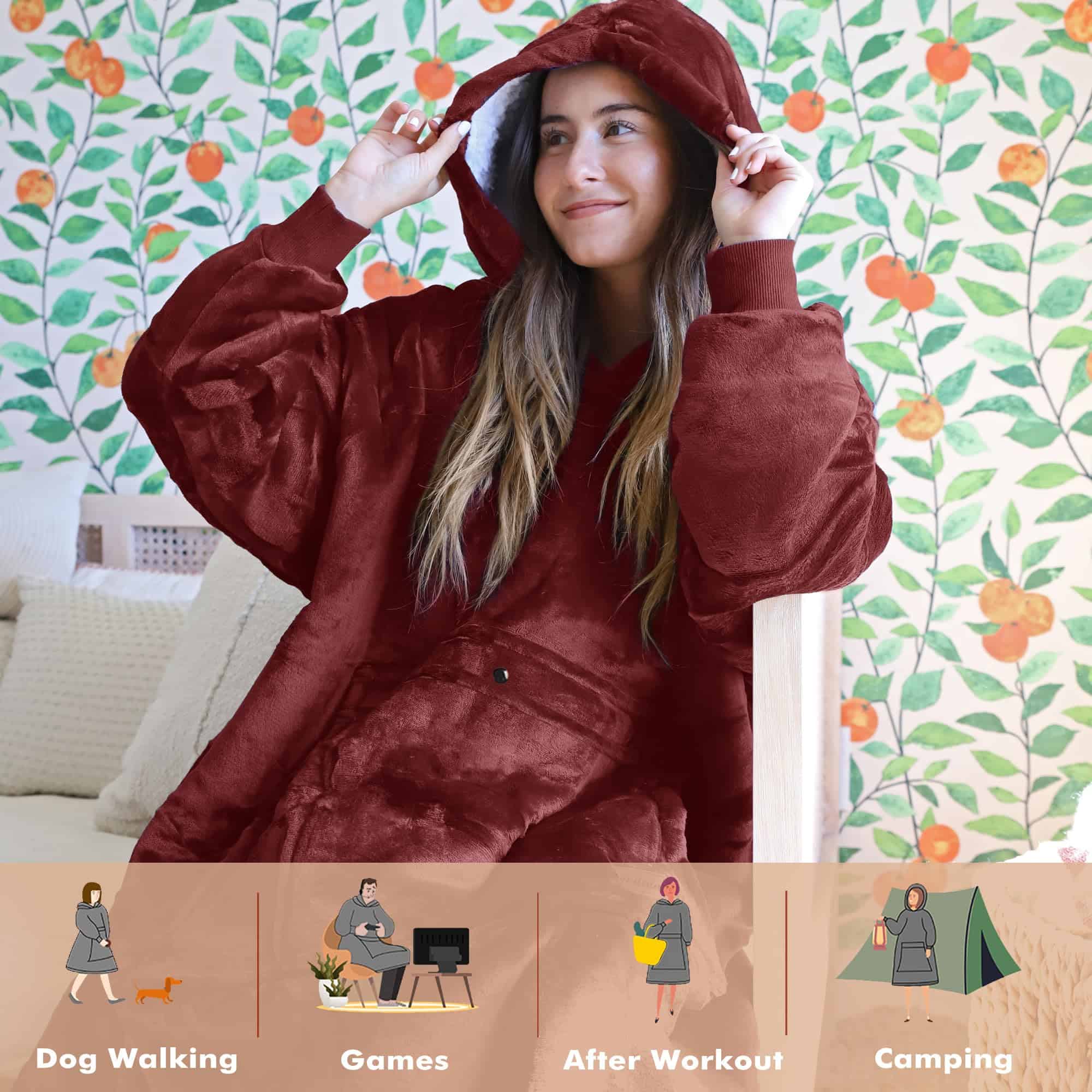 Manta Sudadera con Capucha Extra Grande de Forro Sherpa