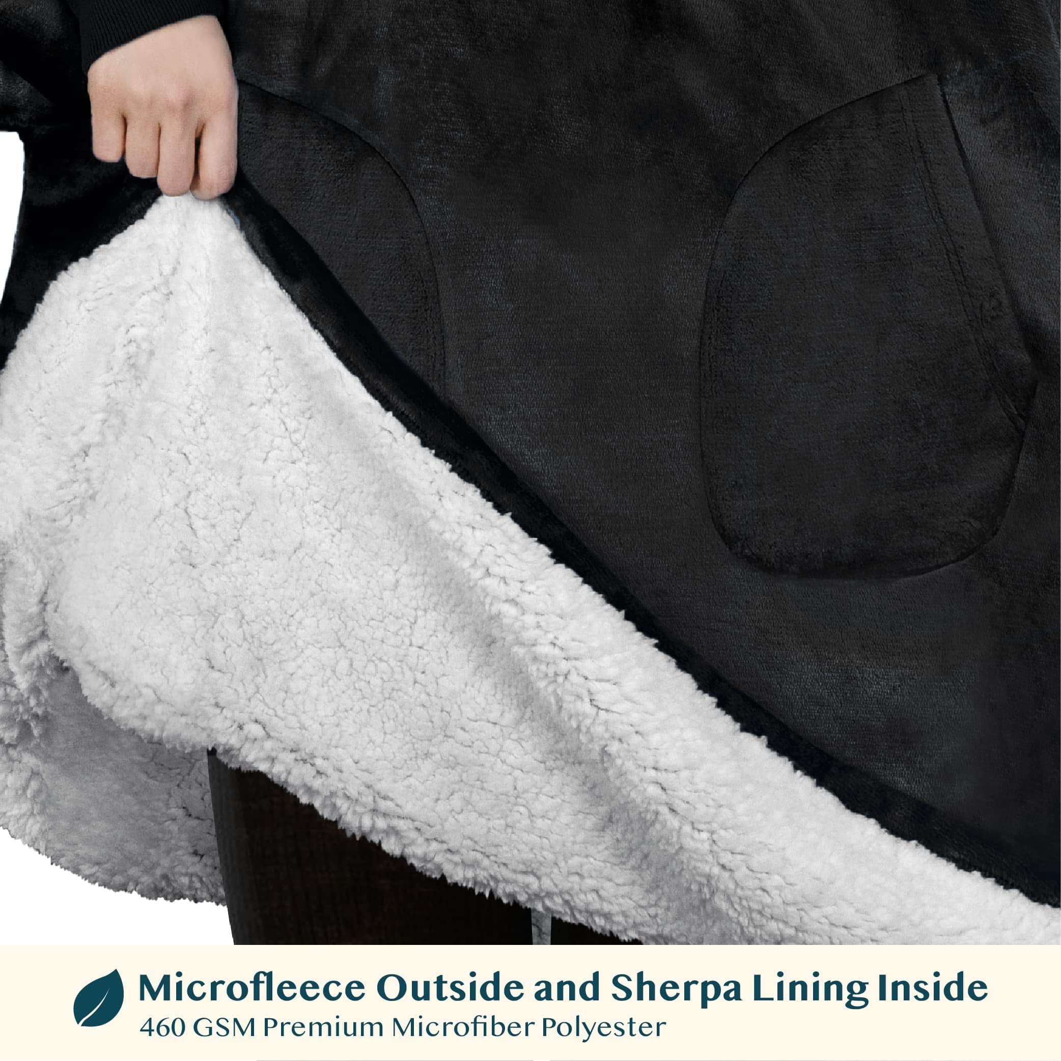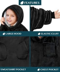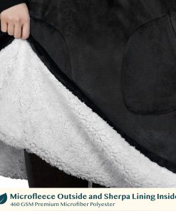 Esta sudadera gigante está hecha de poliéster microfibra de primera calidad con forro reversible de felpa esponjosa sherpa, increíblemente suave, cómoda y lujosa. Proporciona la cantidad perfecta de calidez y es ideal para actividades tanto en interiores como en exteriores, como dormir, ver televisión, descansar en casa, leer, jugar videojuegos, en eventos deportivos, acampar, o tomar una siesta en casa. Con dos bolsillos frontales, bolsillo en el pecho y capucha grande para mantener las manos y el cuerpo cálidos durante las noches frías de invierno.