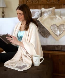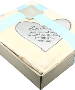 Regala esta manta suave y gruesa de la colección Comfort diseñada internamente por Pavilion a alguien especial para hacerles saber cuánto significan para ti y mantenerlos cálidos en una noche fría. Esta cálida manta viene con un corazón lleno de palabras reconfortantes que le hacen saber al destinatario tus amables deseos. Esta manta lista para regalar es mullida y acogedora y perfecta para un amigo o familiar que podría disfrutar de la suavidad reconfortante con su mensaje de cuidado. Desde su suavidad espesa hasta su liso corazón bordado en su lugar, esta manta será un recordatorio especial de ti y cuánto te importa la persona afortunada que la reciba.