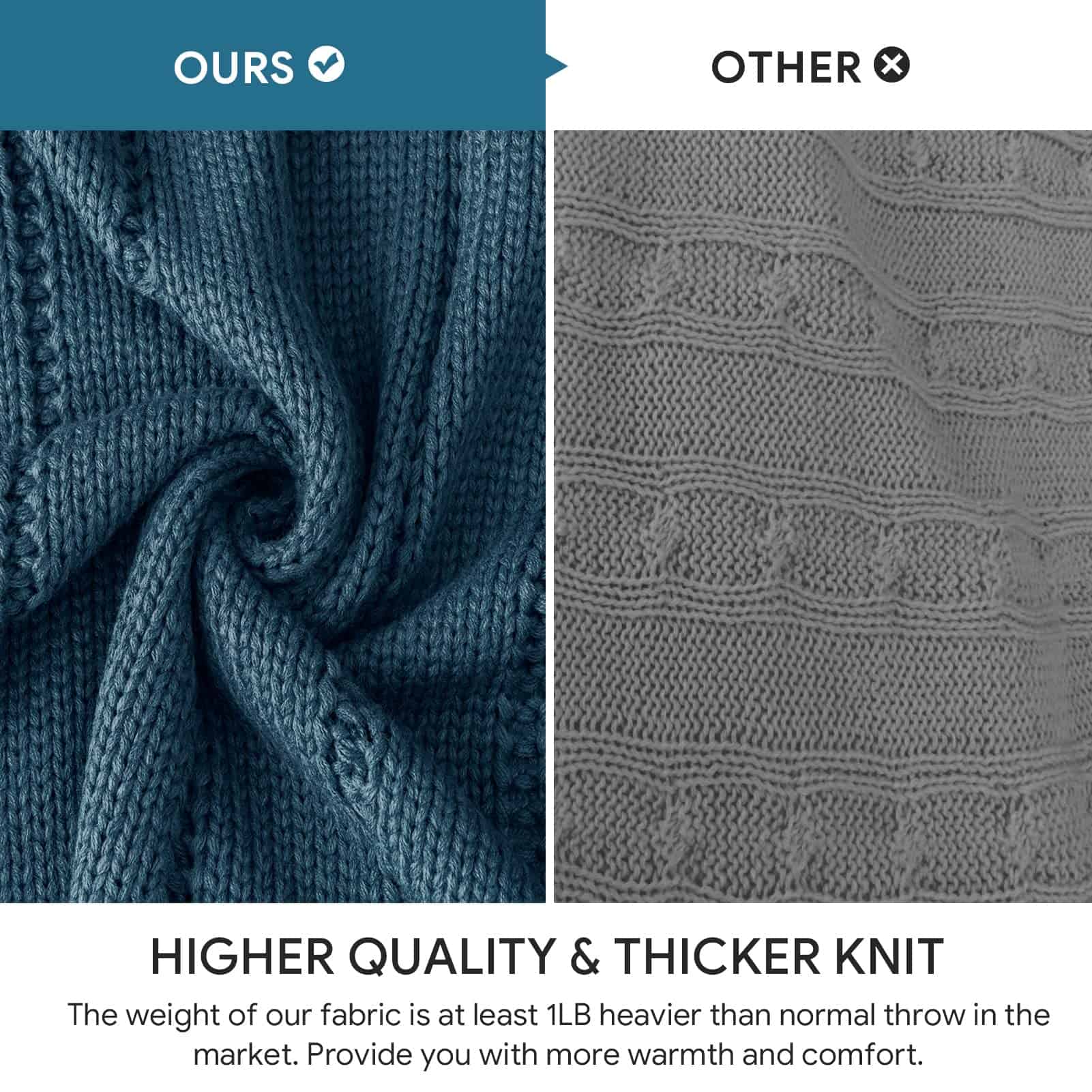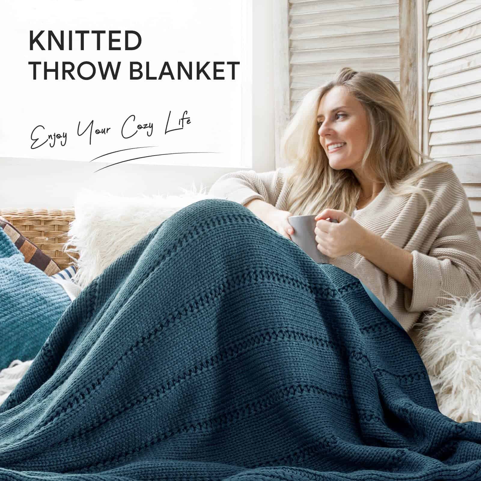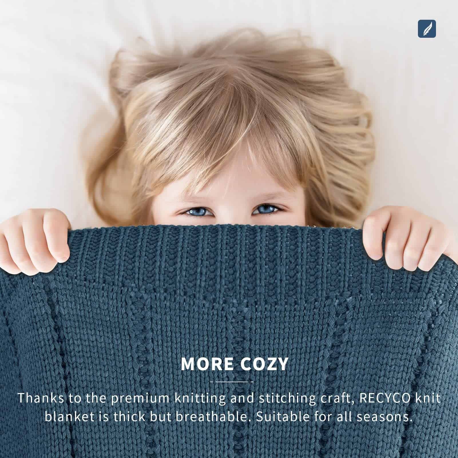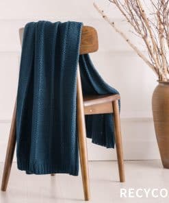 Manta Tejida Cable Recyco en Azul Marino para Sofá, Súper