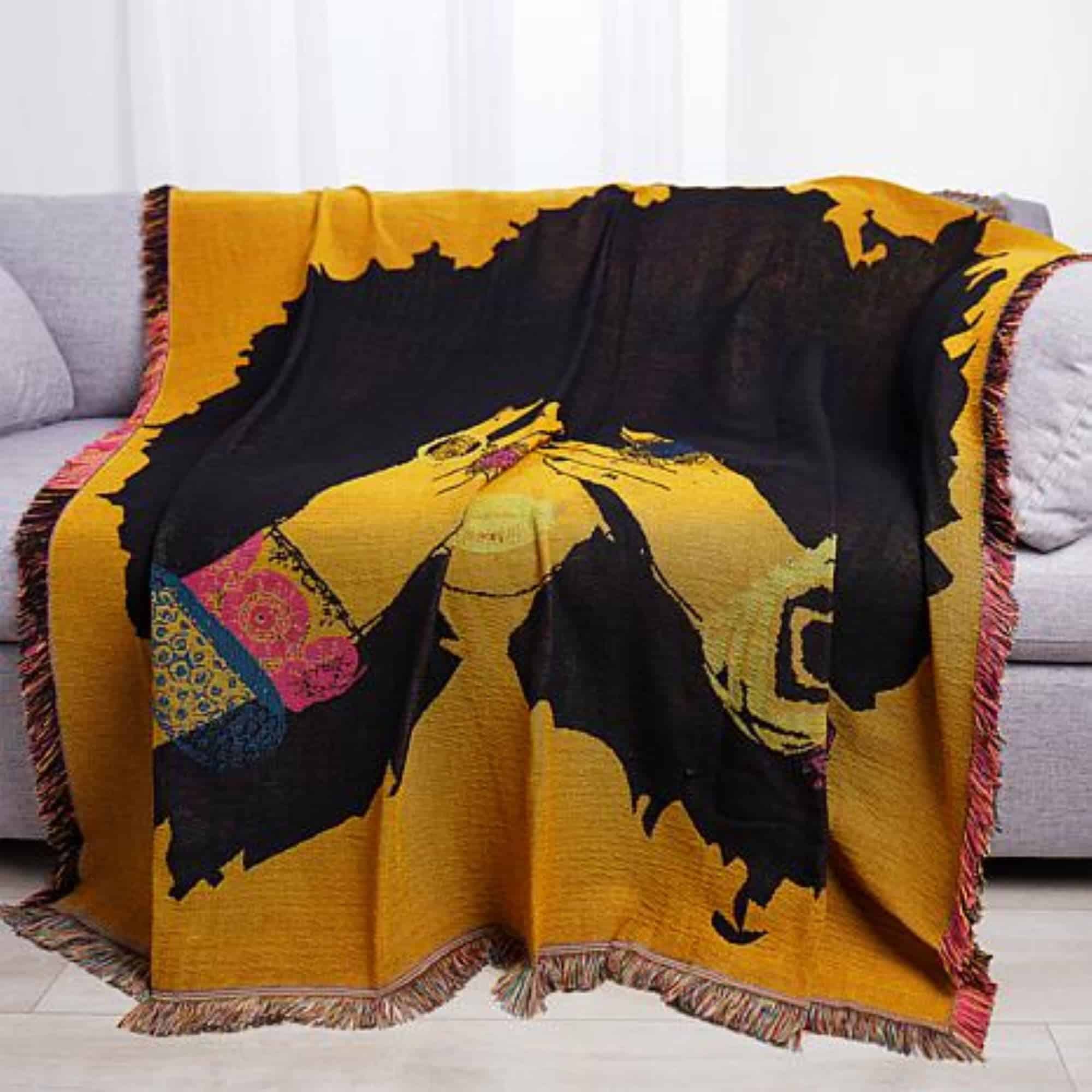 Agregue un toque audaz pero siempre clásico a su espacio con esta manta. Su mezcla de algodón y poliéster muestra un diseño tejido empoderador enmarcado con flecos de varios colores. Acolchonarse debajo de la tela suave y acogedora, ¡o cuélguela para usarla como arte mural!
