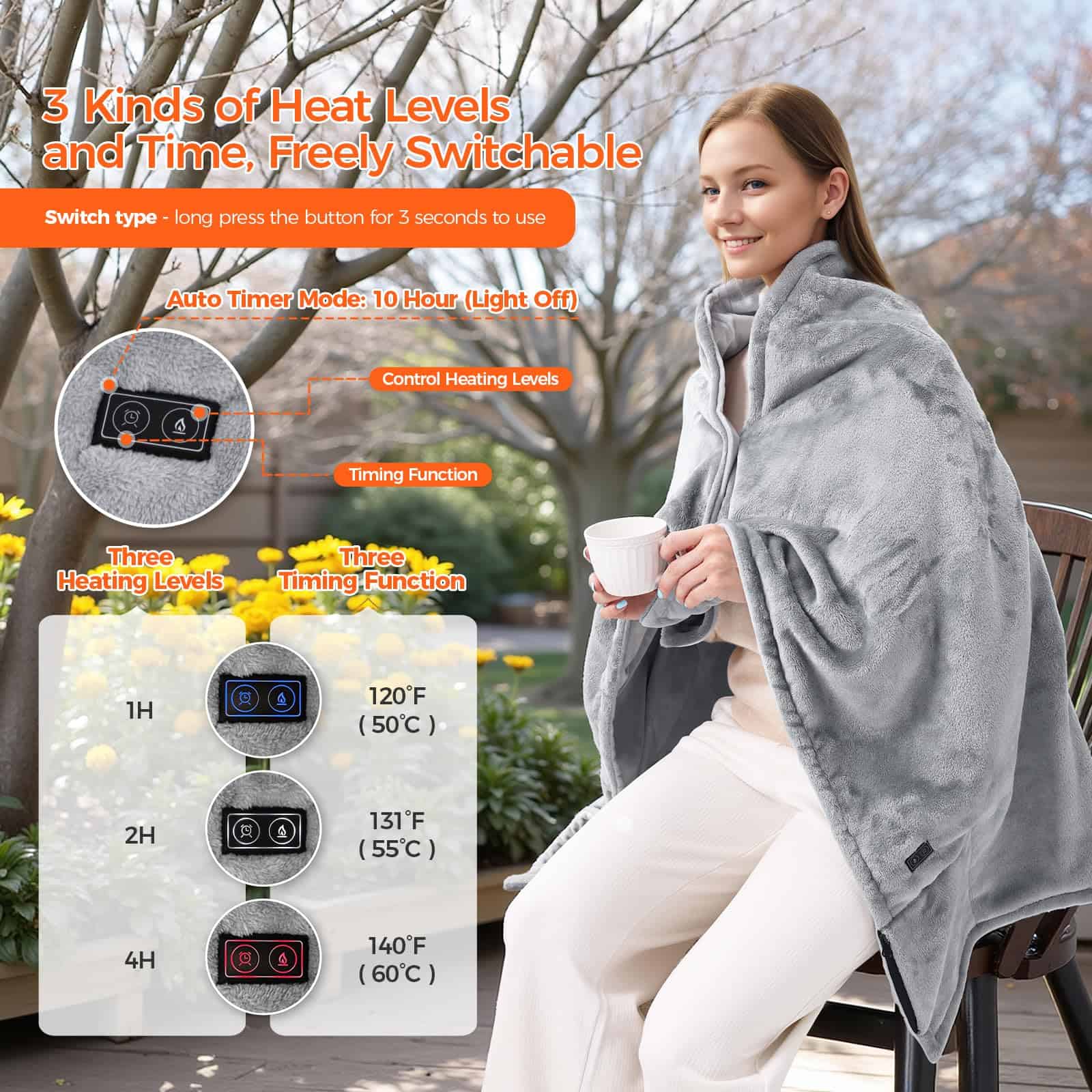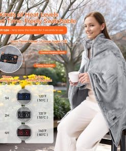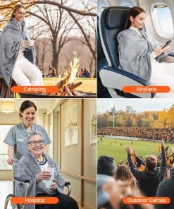 Manta térmica con batería operada portátil para exteriores utiliza franela suave y agradable para la piel, que se sabe que dura más, resiste las manchas y se desvanece mejor que las mantas de algodón tradicionales. La manta con calefacción se puede lavar y doblar, este producto se puede lavar repetidamente para mantenerlo limpio (no es compatible con la limpieza en seco) y prolongar la vida útil del producto. El paquete incluye 1 manta térmica inalámbrica de 55.11» x 34.25», 1 batería recargable, 1 cargador, 1 cable Type-C, 1 cable de extensión Micro, 1 bolsa reutilizable. La manta térmica inalámbrica para hombres y mujeres le permite caminar sin restricciones. Manténgase abrigado en cualquier lugar en casa, la oficina, en su automóvil o mientras acampa. La manta térmica portátil se puede utilizar como regalo de Acción de Gracias, cumpleaños o Navidad para familiares y amigos o como un regalo cálido de invierno para usted mismo.