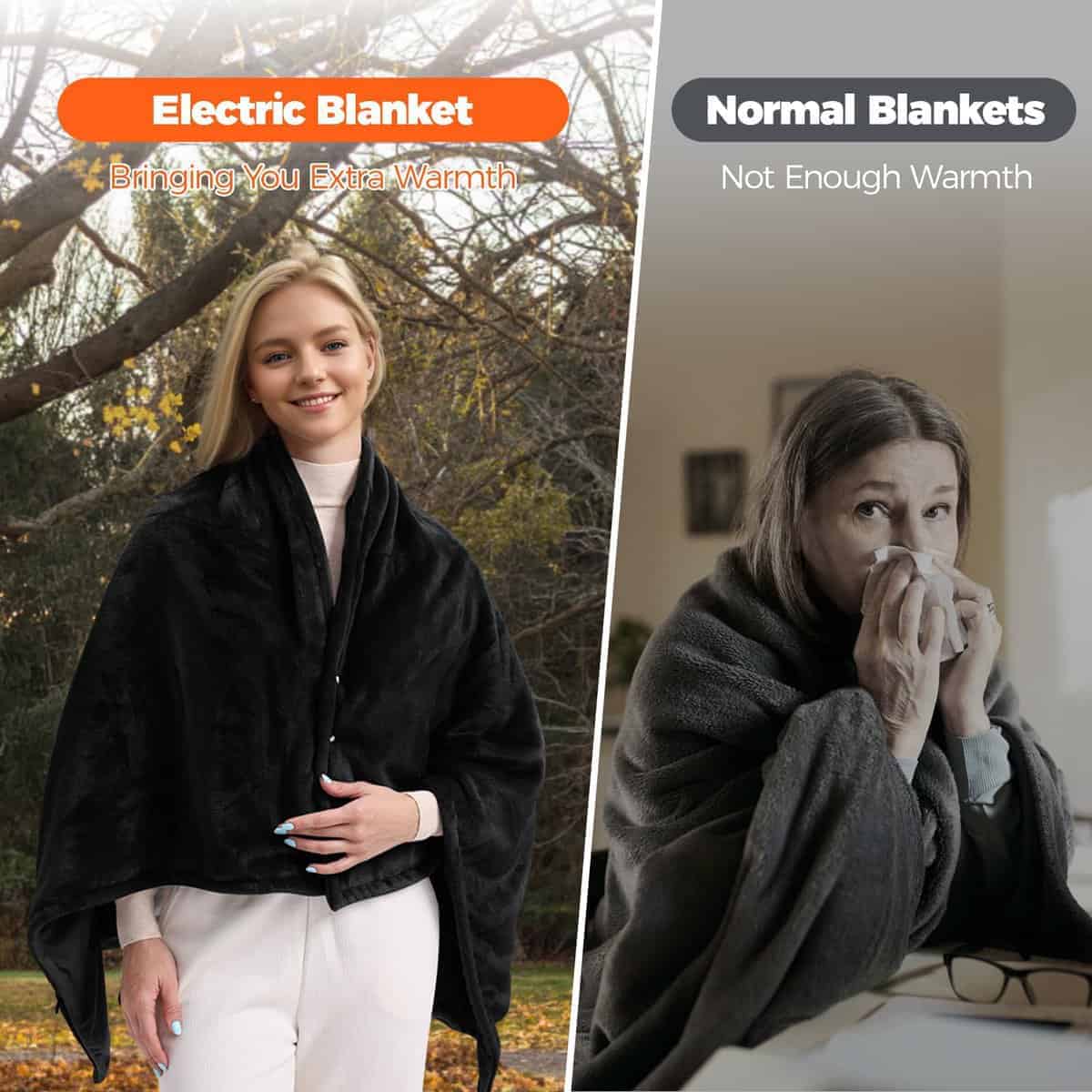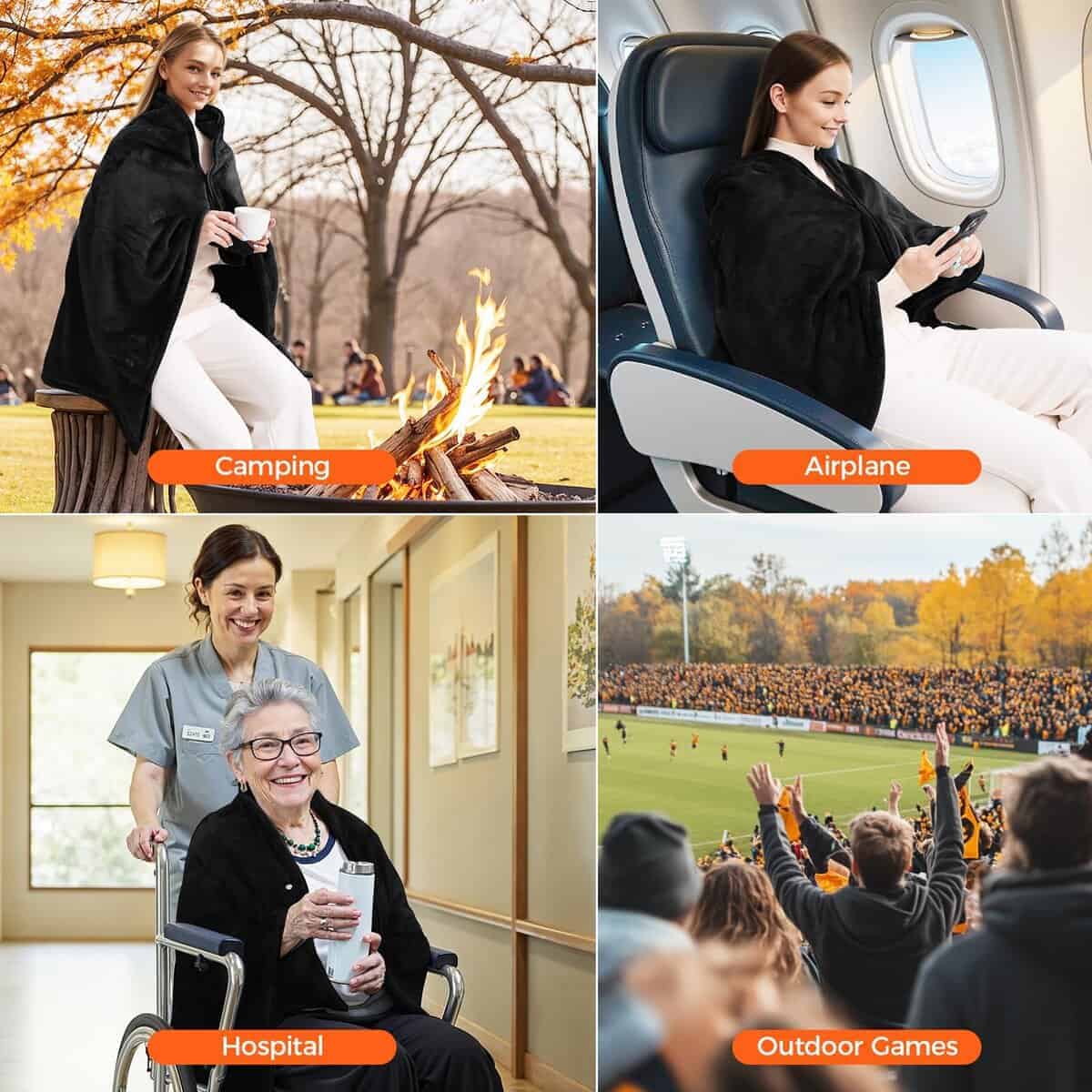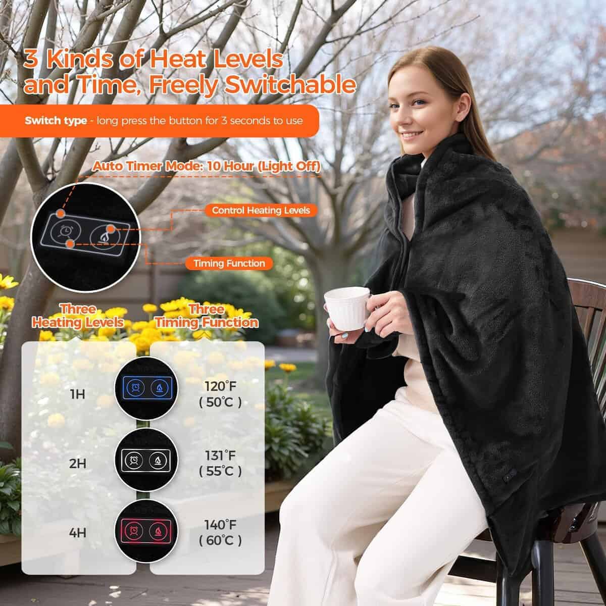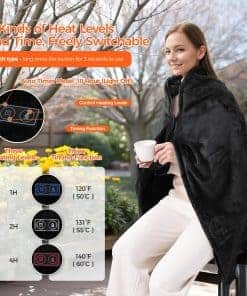 Manta térmica portátil con batería de 20000mAh, manta térmica inalámbrica con 8 zonas de calentamiento, 3 niveles de calor y función de temporizador que puede calentarse rápidamente. Perfecta para exteriores, camping, pesca y ver juegos deportivos. La manta eléctrica también se puede utilizar para aliviar el estrés, mejorar la circulación y ayudar con problemas de sueño. Lavable a máquina con franela suave y resistente, resistente a manchas y decoloración. El paquete incluye una manta térmica inalámbrica de 55.11» x 34.25», batería recargable, cargador, cable tipo C, cable micro de extensión y bolsa reutilizable. Regalo perfecto para familiares y amigos en ocasiones especiales como Acción de Gracias, cumpleaños y Navidad.