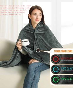 1. Manta térmica cálida y cómoda con chal: Esta manta térmica con batería está hecha de fibra de poliéster 100% de alta calidad y cuenta con elementos calefactores premium. Ofrece 3 niveles de calor, proporcionando un calor constante para tu cuello, hombros, brazos, pecho y espalda (áreas principales del cuerpo) cuando te la pones. Alimentada por una batería de 18400mAh, funciona durante un período de 4:00-9:00 horas. Nota: Nuestra manta térmica mide 59×37 pulgadas. Dependiendo del tamaño del cuerpo individual, el ajuste no siempre puede ser perfectamente ceñido.