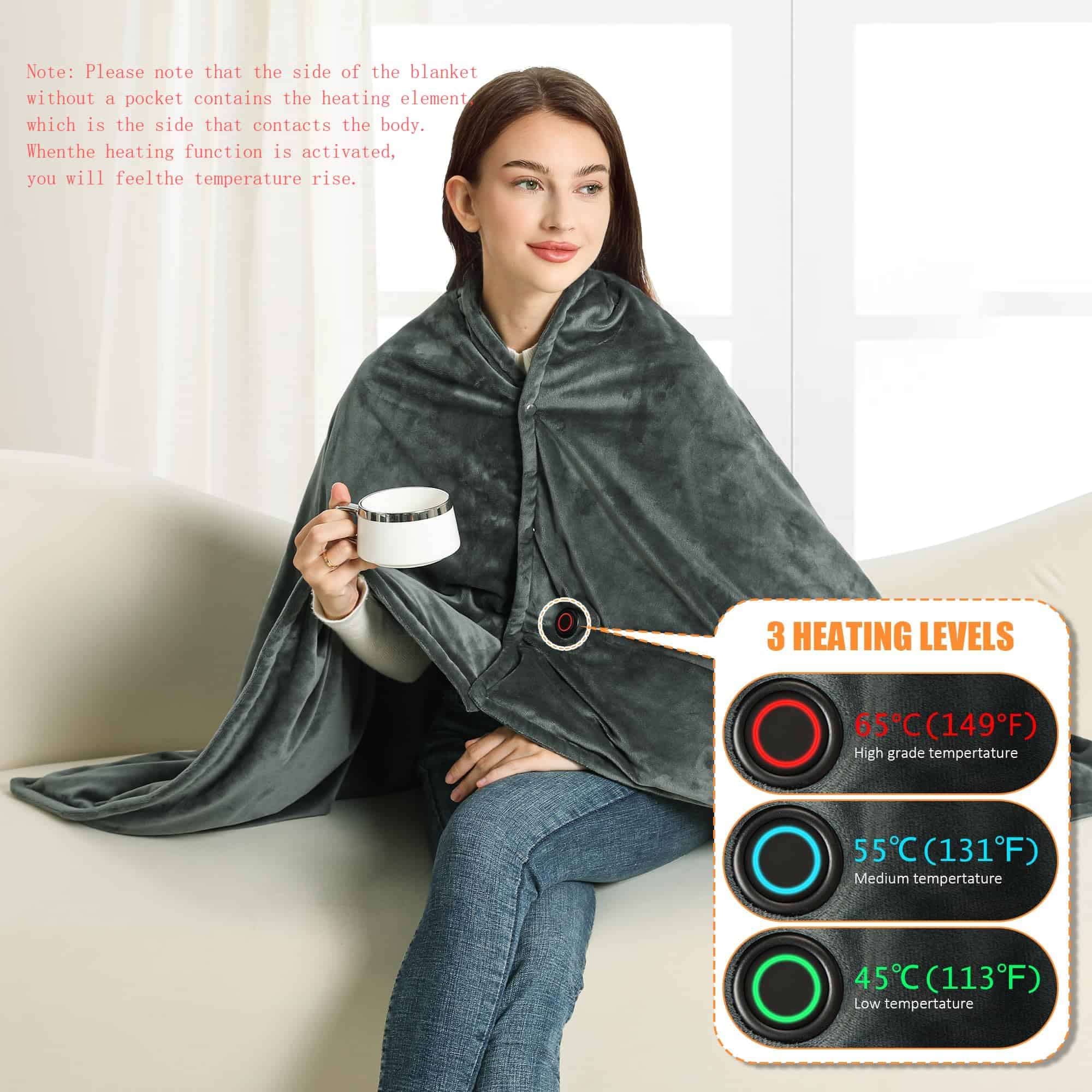 5. Regalo único para seres queridos: ¿Buscas un regalo único? Ya sea un cumpleaños, celebración, Navidad, una dama especial, mejor amiga, papá, mujer, hermana o mamá, nuestra manta térmica con batería es la elección perfecta. Dale calor y comodidad durante el frío invierno como una agradable sorpresa, haciéndola sentir feliz y amada en ocasiones especiales. Consejo: Si tienes alguna pregunta sobre el uso del producto, no dudes en contactarnos, y te proporcionaremos soluciones rápidamente.