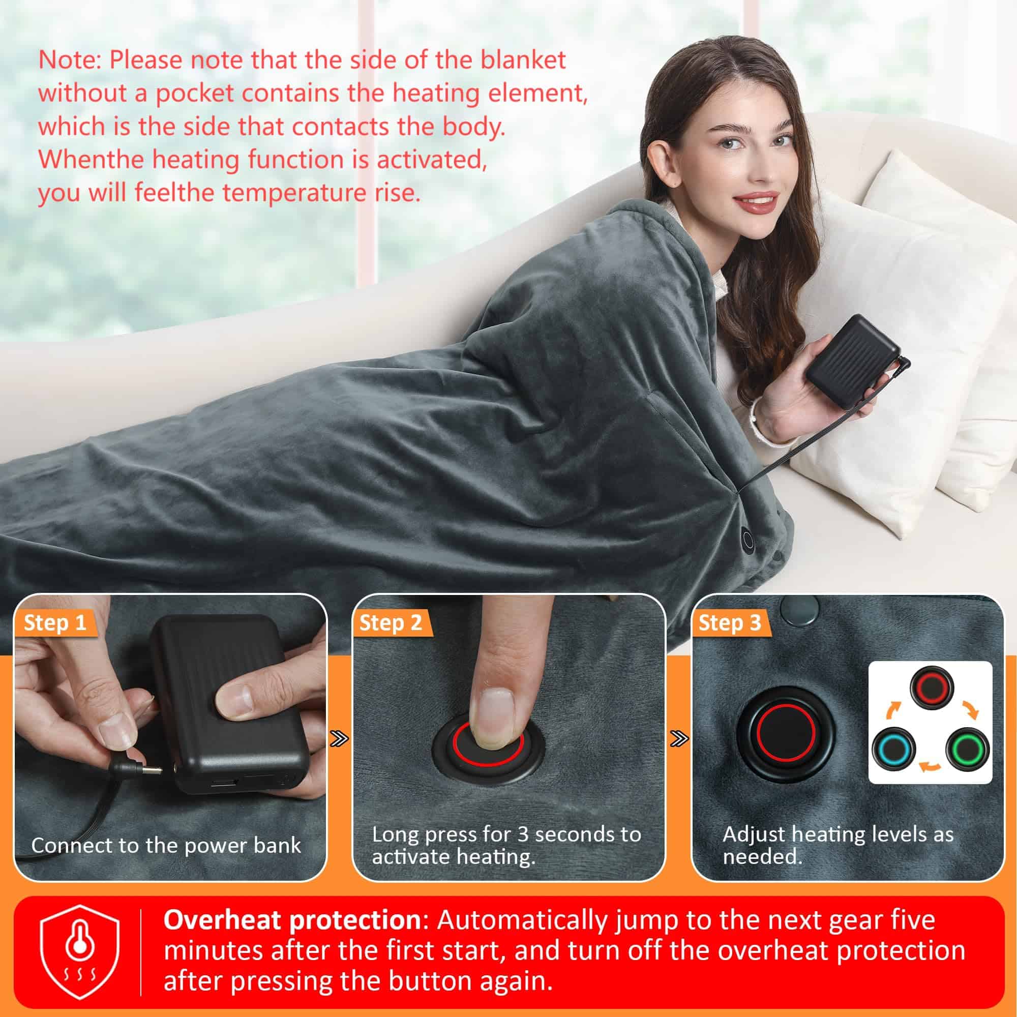 Manta Térmica con Batería y Power Bank, 59″ x 35.5″