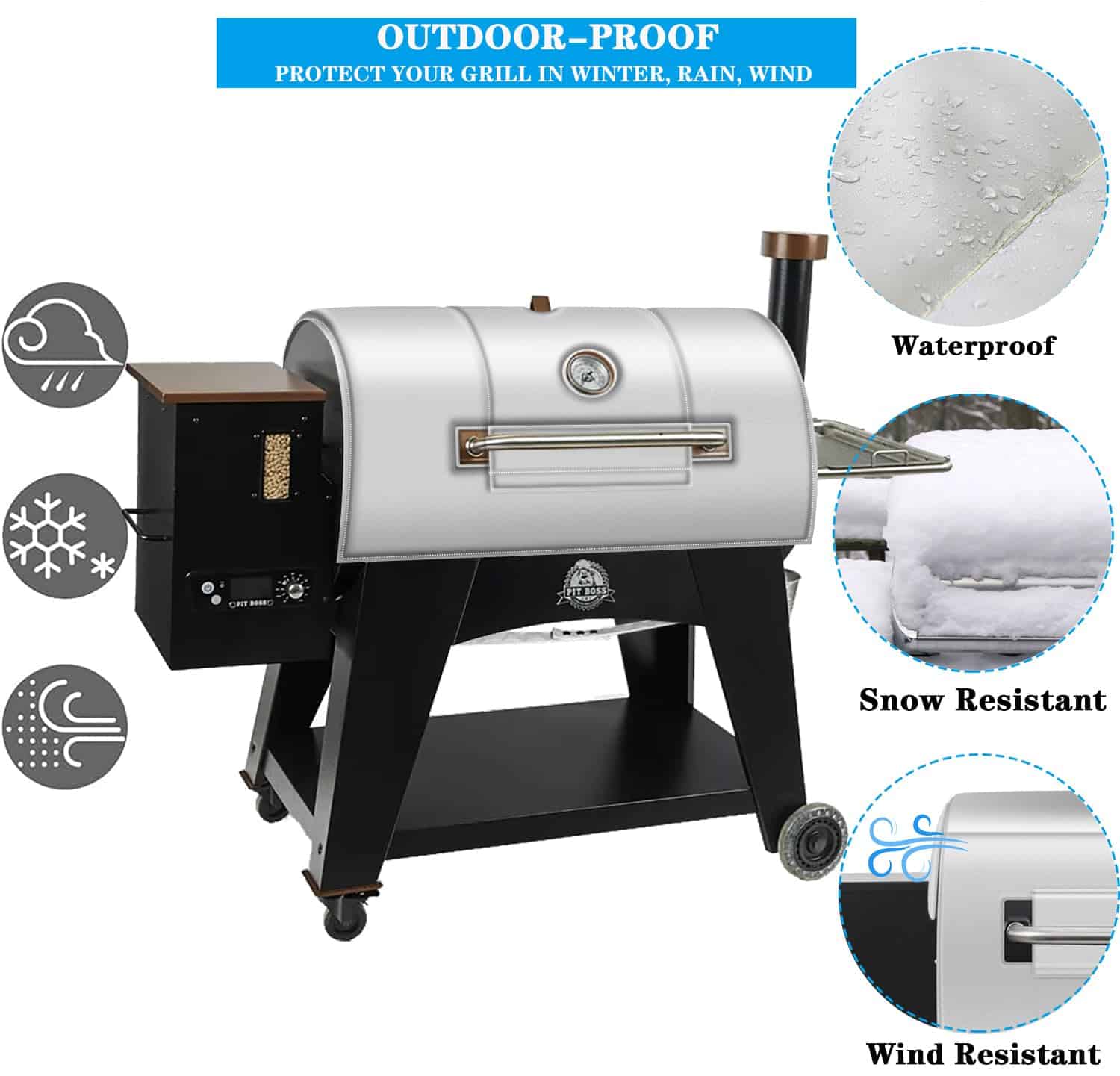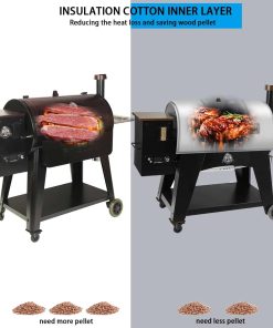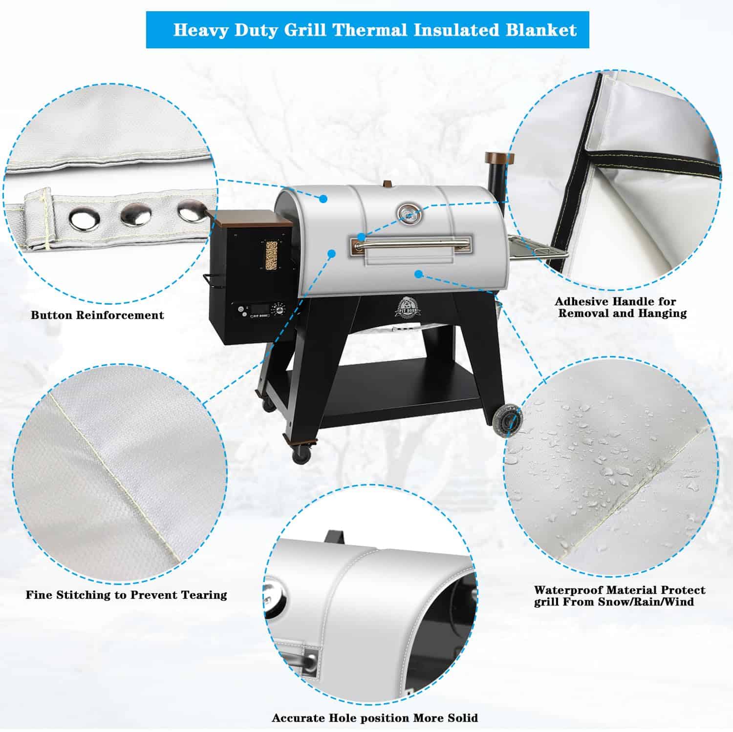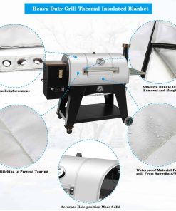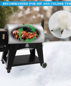 4. Reduce el Consumo de Pellets La manta térmica proporciona un buffer cálido y ayuda a proteger de elementos como la nieve y la lluvia mientras usted asa a la parrilla. La manta aislada ayuda a garantizar temperaturas consistentes en condiciones extremadamente frías. La manta aislante también asegura que no desperdicie pellets cuando el clima se enfría, por lo que su parrilla funciona con máxima eficiencia.
