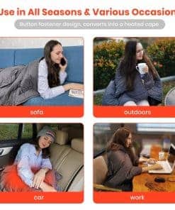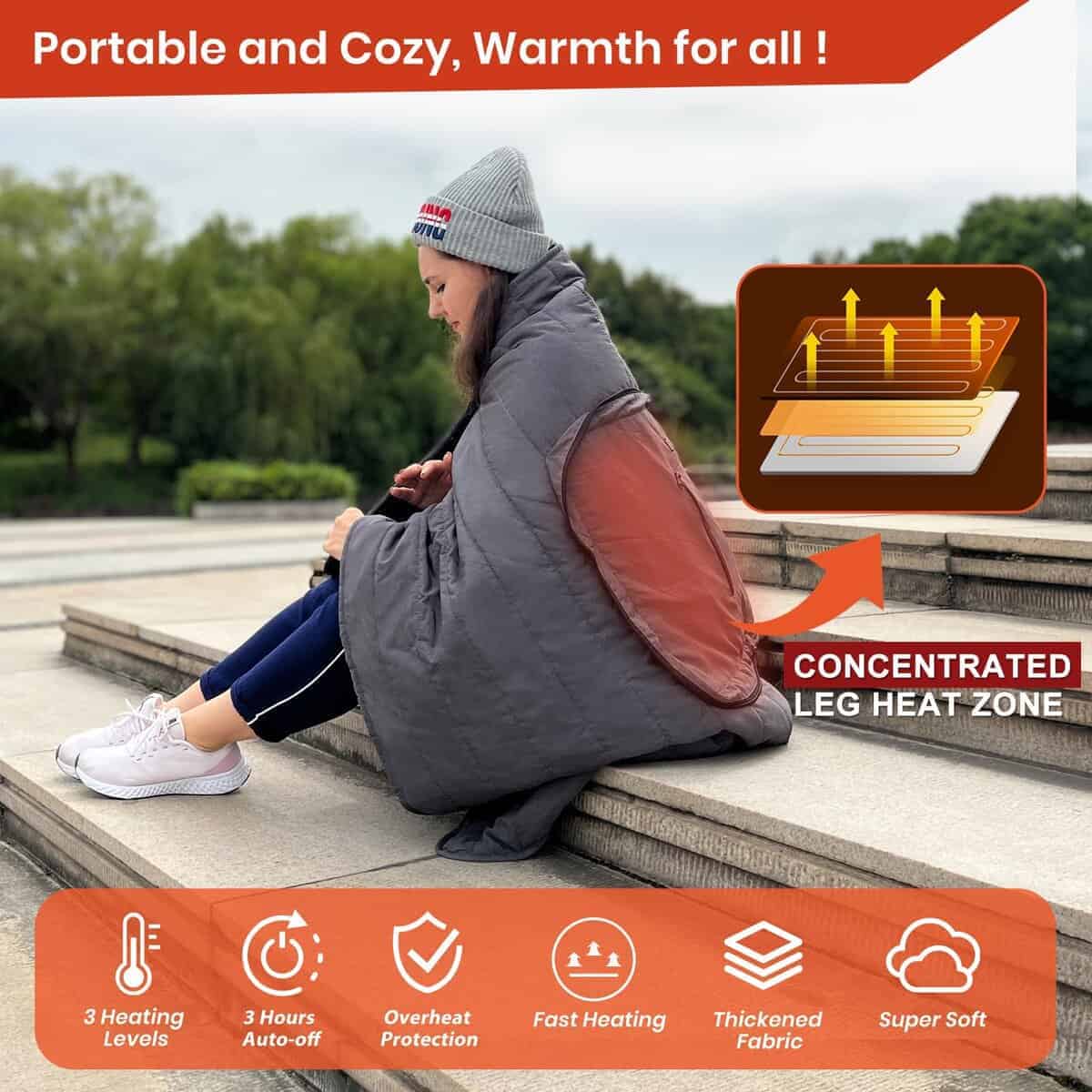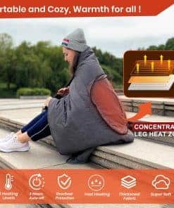 5. Diseño Versátil: La manta térmica portátil se calienta muy bien para las rodillas, puedes usarla como manta de cubierta mientras estás sentado/tumbado. El diseño del sujetador de botón a presión convierte la manta en una envoltura térmica, puedes ponértela para mantenerte caliente. Simplemente sube la cremallera en un cojín térmico para sostener tu cuello cuando estés descansando. Diseño plegable, compacto para deportes al aire libre, conducción, trabajando en cualquier momento, en cualquier lugar. Cobertura total del cuerpo de 58″ de altura x 38″ de ancho, manta térmica USB de gran tamaño para colocar sobre el hombro o en el regazo