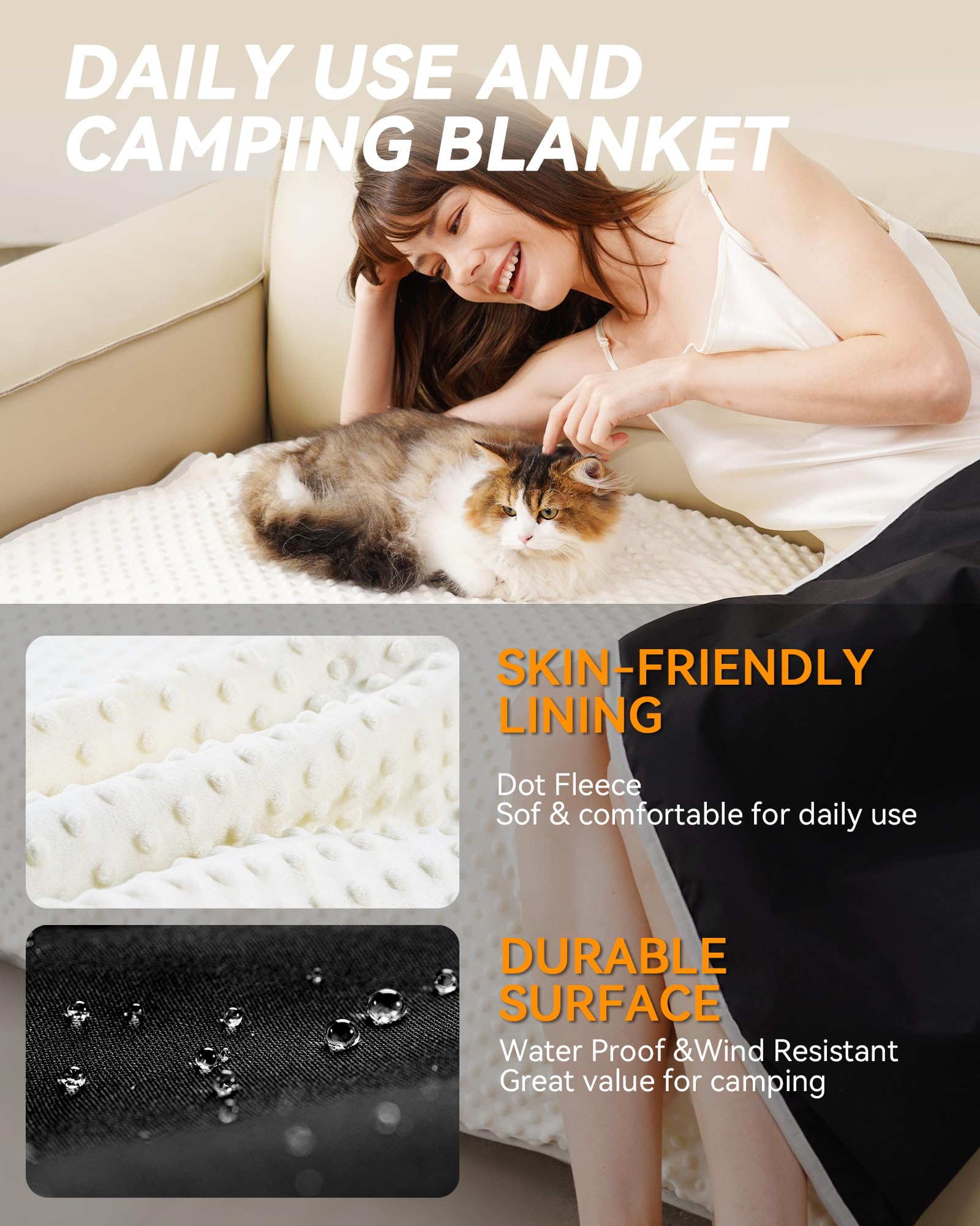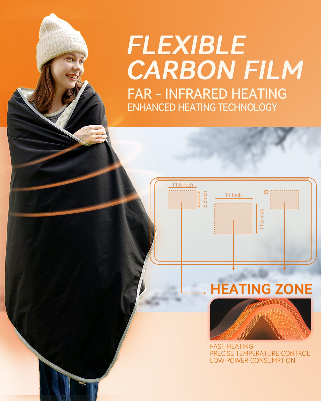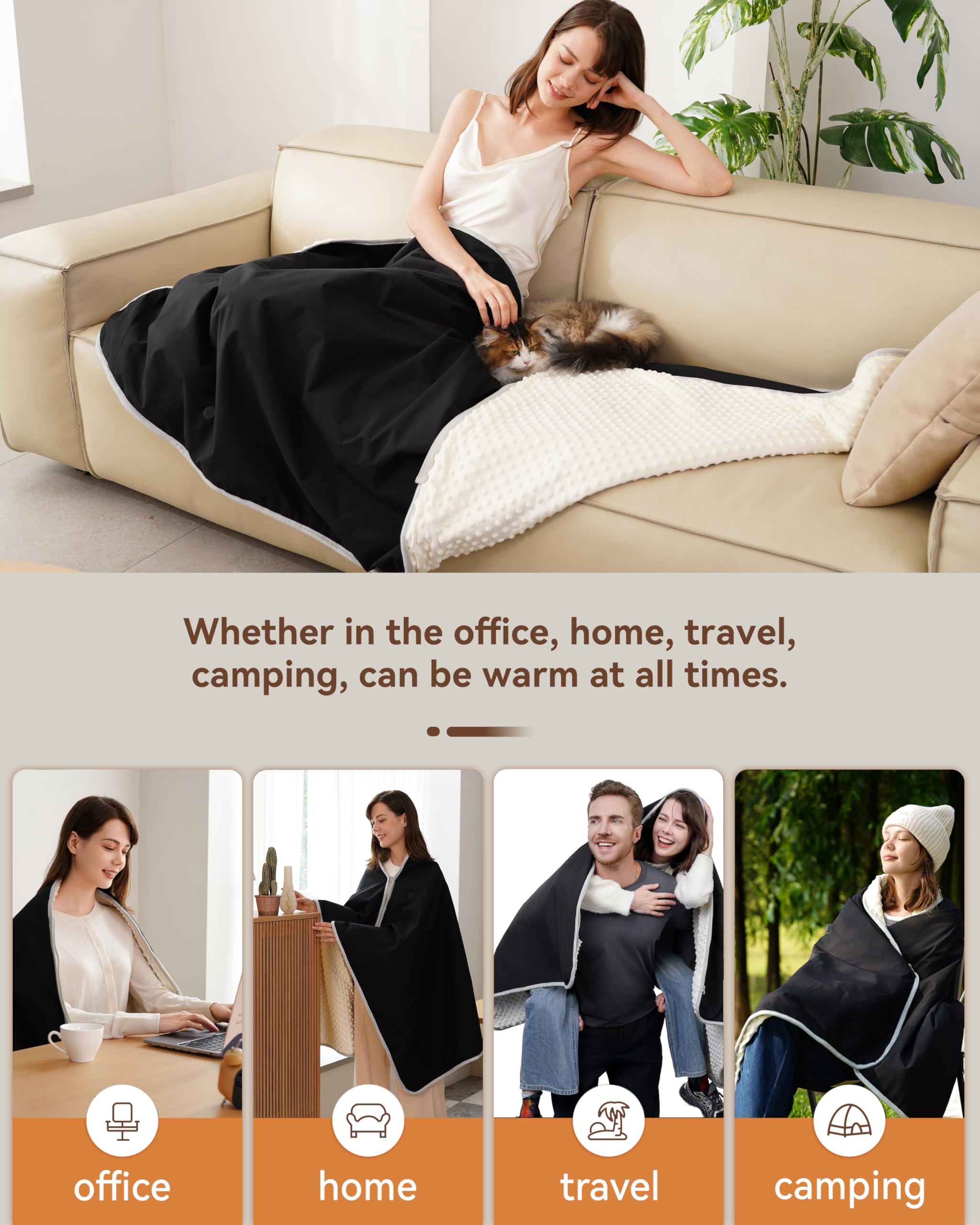 3. Tamaño más grande para mayor cobertura: Disfruta de una comodidad total con nuestra manta térmica mejorada, que ahora mide 70.8 x 35.4 pulgadas. Ofrece calidez para todo el cuerpo o espacio para compartir, lo que la hace ideal para relajarse en casa o en movimiento.