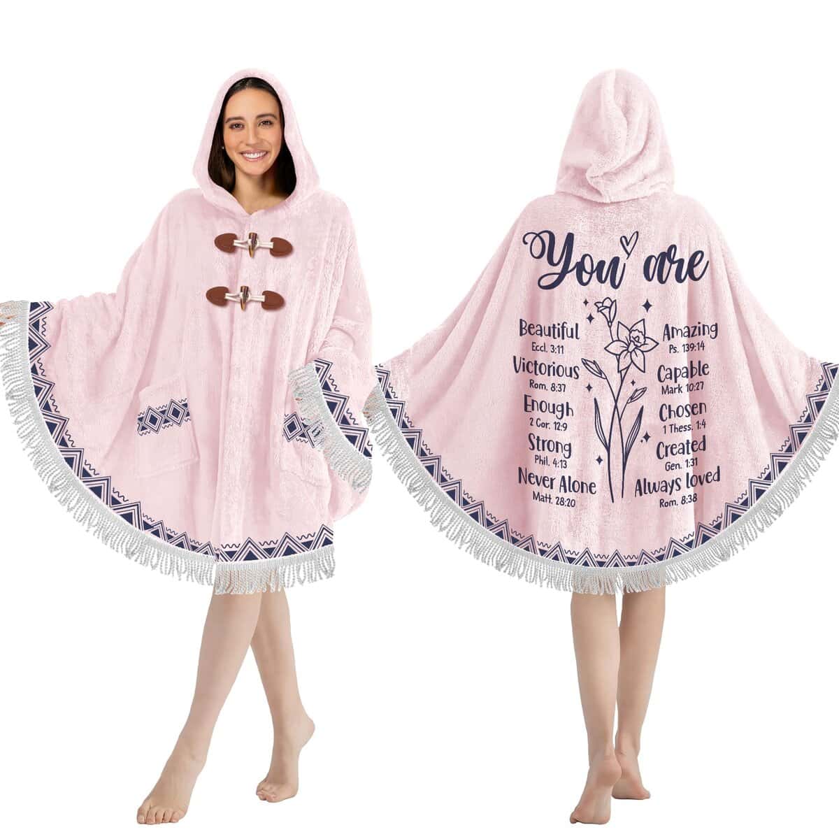 Manta Wearable con Versículo Bíblico – Regalos Cristianos Para Mujeres, Navidad, Cumpleaños Para Mujeres, Inspiración, Religioso, Regalos Para Mamá, Amiga, Hermana – Eres Hermosa
