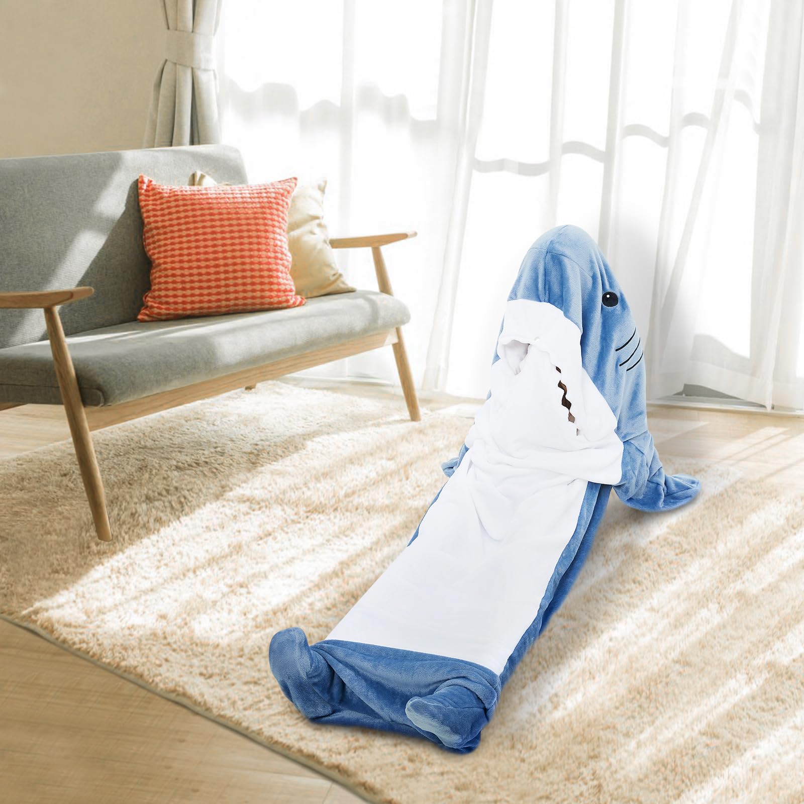 Manta Wearable tipo Tiburón con Capucha, Súper Suave Saco