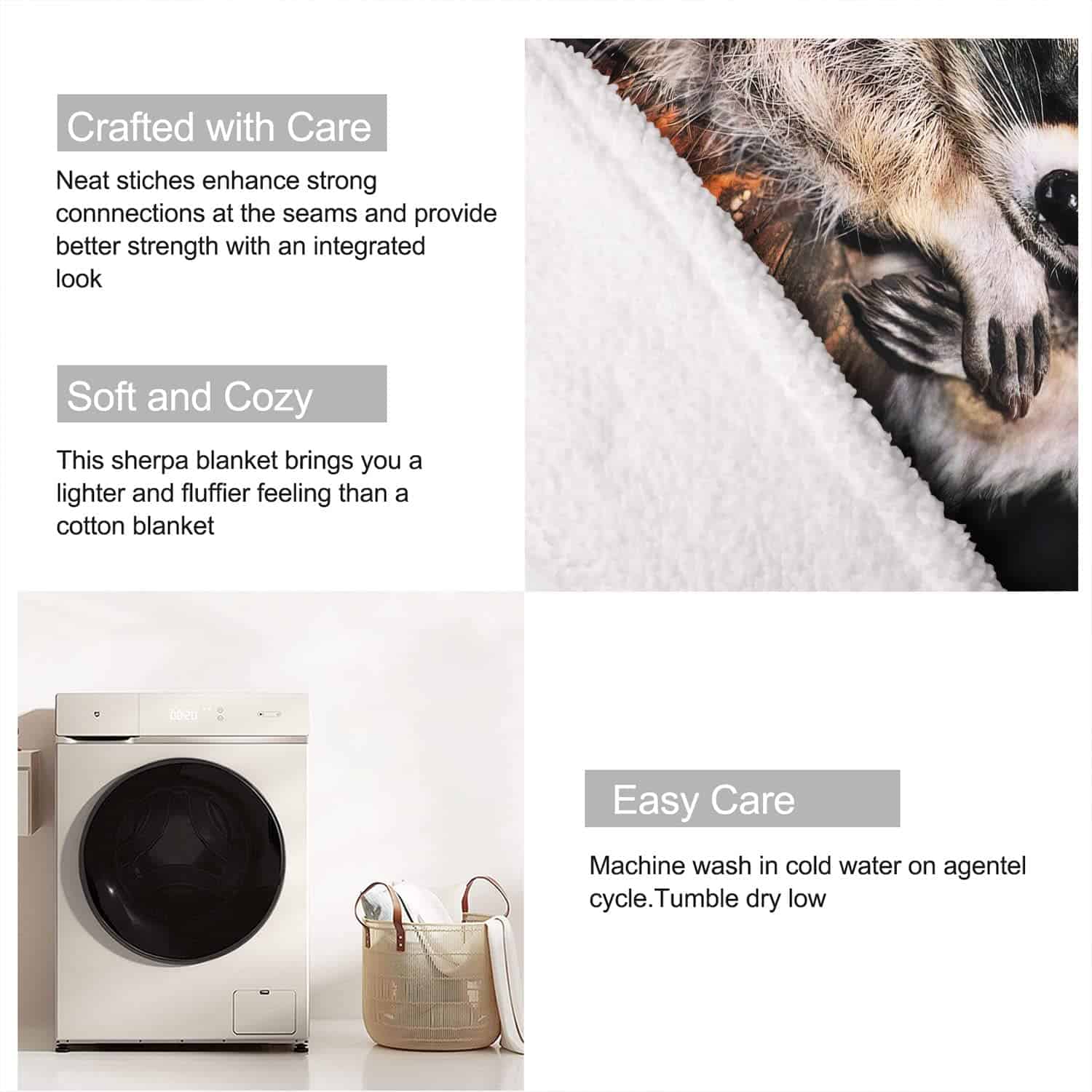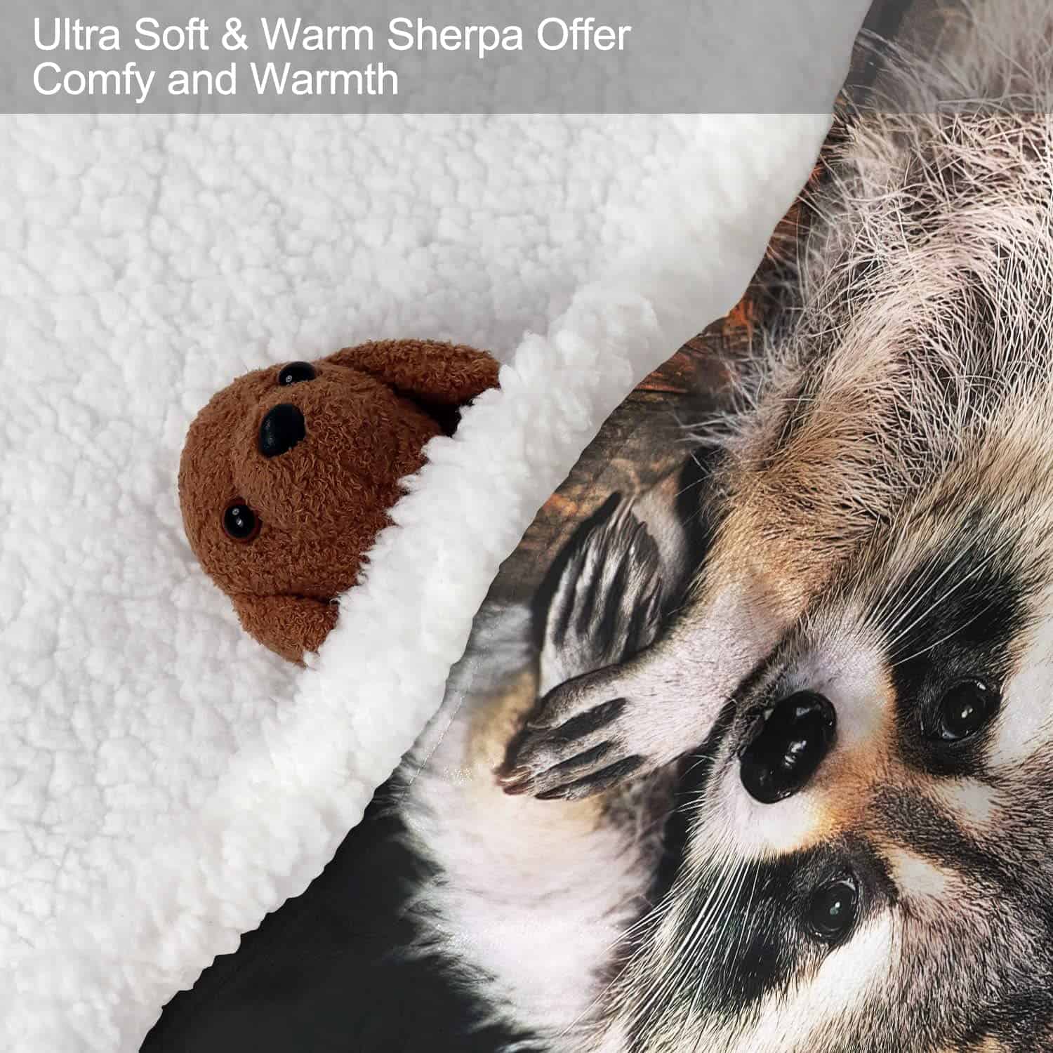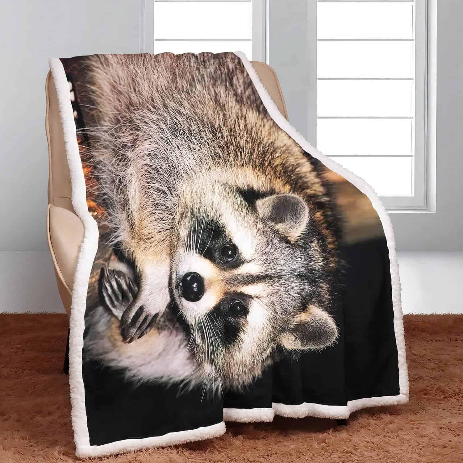 Manta XSMEI de 50″x60″ con Estampado de Mapache Sherpa –