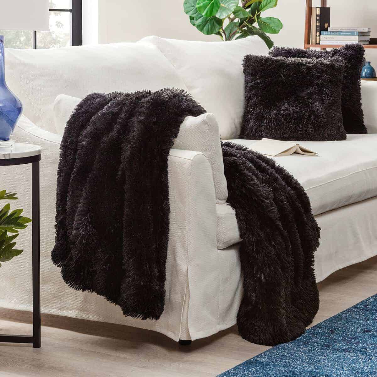 Manta y Funda de Cojín Premium Chanasya – Manta de Piel