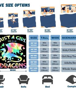 Características de los materiales premium: Hecho de material premium de microfibra suave para una mejor transpirabilidad y comodidad, es como dormir bajo una nube, suave y ligero sin ser voluminoso, manteniendo el calor que necesitas y promoviendo un sueño reparador. Puedes elegir el tamaño correcto según tus necesidades, o puedes comprar varios tamaños para satisfacer las necesidades de tu familia (30×40) pulgadas adecuado para la siesta de niños y niñas. (40×50) pulgadas adecuado para mantas de exterior, mantas de camping y viaje. (50×60) pulgadas adecuado para mantas de sofá. (60×80) pulgadas adecuado para cama y sofá. (90×120) pulgadas adecuado para la familia. Adecuado para las cuatro estaciones y uso en múltiples escenarios Nuestra manta es tan suave y cómoda que puedes dormir la siesta en tu cama, en el sofá, en un viaje de campamento o en la oficina. No es solo una manta, es una hermosa pieza decorativa. Agrega textura adicional a tu decoración y transforma tu habitación en un espacio acogedor con estos diseños. Regalo perfecto El diseño de Just A Girl Who Loves Dragons en esta divertida manta de franela hará que tus padres, amantes, hijos, familiares y amigos se sientan vivos e interesantes, también es un regalo ideal para Aniversario, Día de San Valentín, Día de la Madre, Día del Padre, Día del Niño, Pascua, Halloween, Día de Acción de Gracias, Navidad, o cualquier evento festivo. Fácil de limpiar y duradera Por favor, limpia tu manta una vez antes de usarla, lavado a máquina, agua fría o tibia, recuerda no usar agua caliente. Se recomienda secarla en un lugar ventilado después del lavado y mantenerla seca durante el almacenamiento. Servicio satisfactorio Si tienes alguna pregunta, no dudes en contactarnos, te responderemos lo antes posible dentro de las 24 horas. ¡Felices compras!