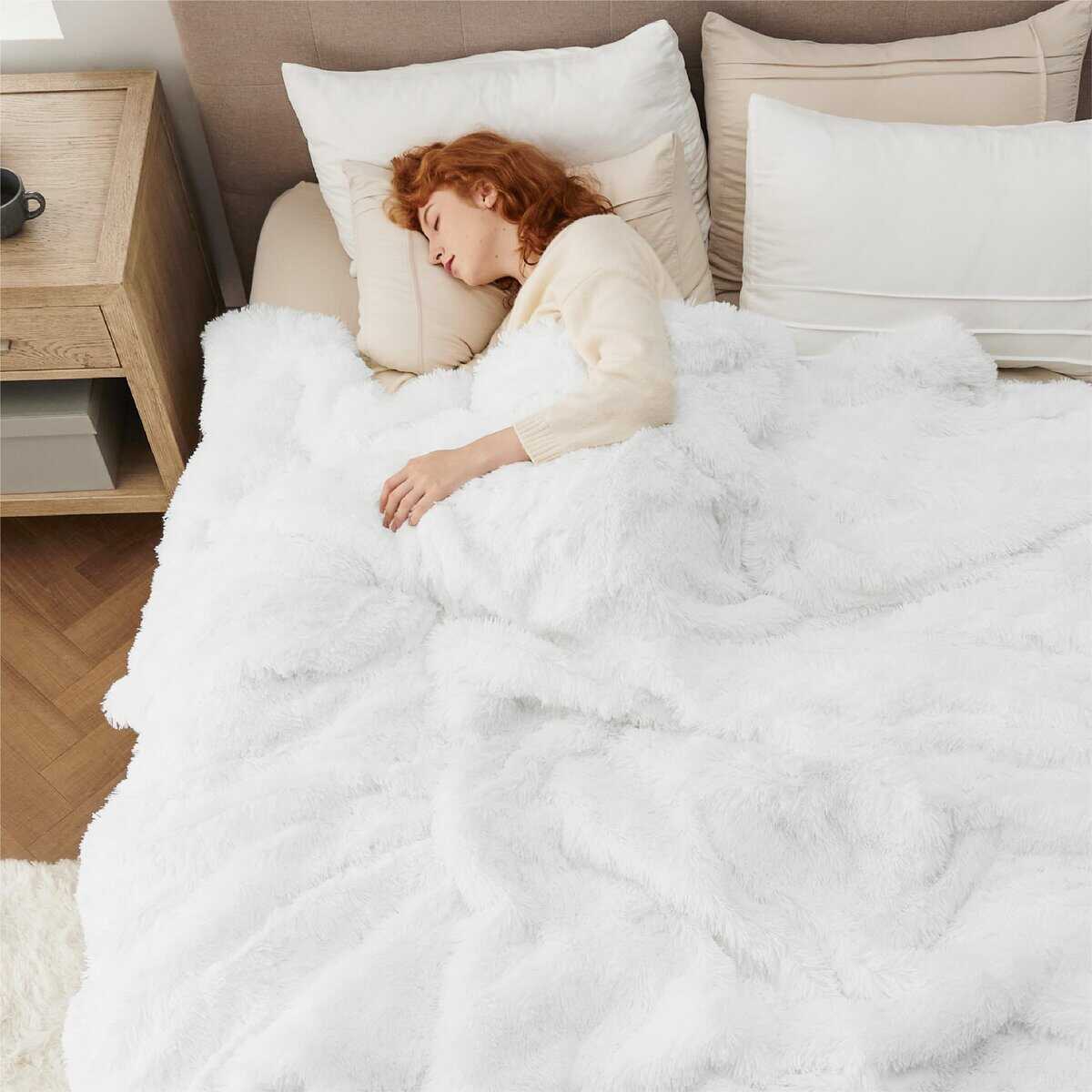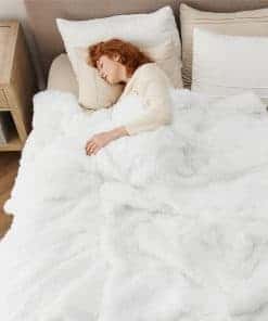 3. Gruesa y Cálida: La manta de Felpa Falsa de Bedsure mantiene el equilibrio perfecto entre peso y calor. Ya sea para acurrucarse en casa, en un viaje por carretera, o en una aventura de acampada, es una manta de regalo ideal que garantiza calor sin volumen.