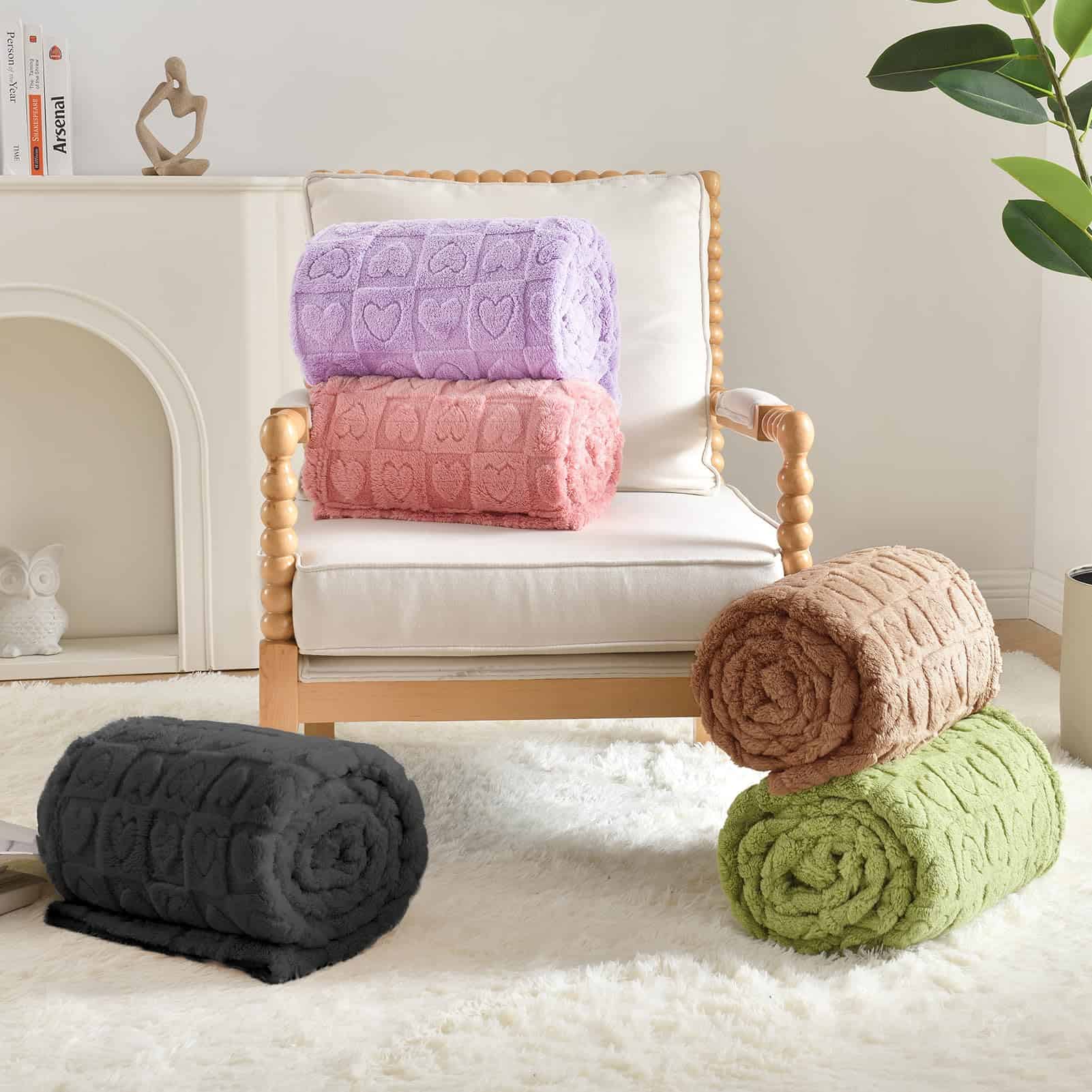 Exquisitamente tejida a la perfección, cada cuadrado de esta manta forma un patrón de corazón encantador, simbolizando amor y calidez. Combinando estilo y comodidad de manera impecable, mejora cualquier espacio con elegancia atemporal, asegurando un ambiente cautivador dondequiera que descanse. Disponible en una gama de colores incluyendo rosa, verde salvia, morado claro y gris, nuestra manta mejora sin esfuerzo la estética de su espacio vital. Elija entre una variedad de tamaños que incluyen Desechar (50″ x 60″), Twin (60″ x 80″), Queen (90″ x 90″), King (90″ x 108″) y más para satisfacer sus necesidades. Versátil y visualmente impactante, nuestra manta complementa cualquier estilo de decoración, ya sea colocada sobre un sofá para una acogedora noche de películas o extendida sobre una cama para agregar un ambiente romántico. Se puede lavar a máquina y secar a baja temperatura, nuestras mantas ofrecen un mantenimiento fácil. Por favor, tenga en cuenta que no se pueden blanquear ni planchar.