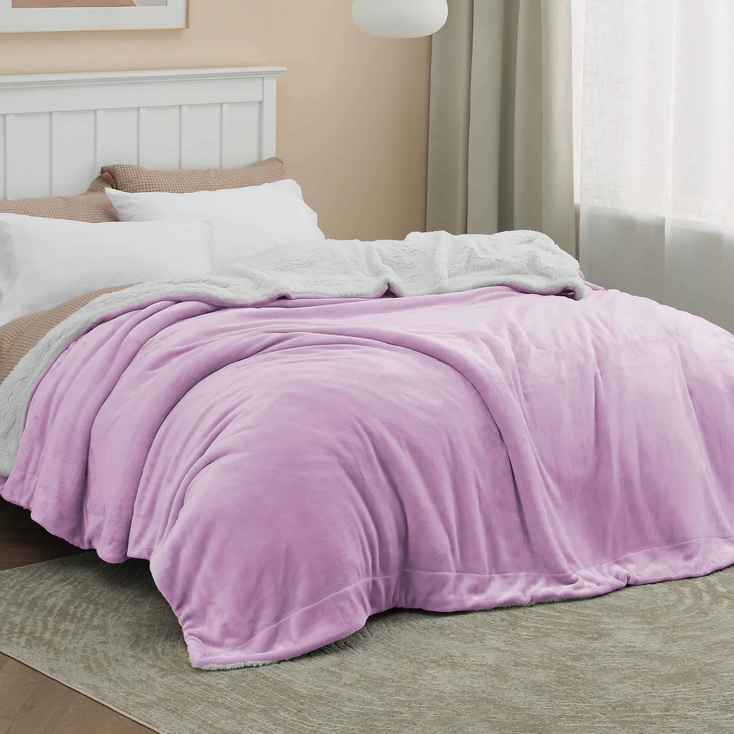 Mantas de Franela Sherpa Bedsure tamaño Queen -Lila