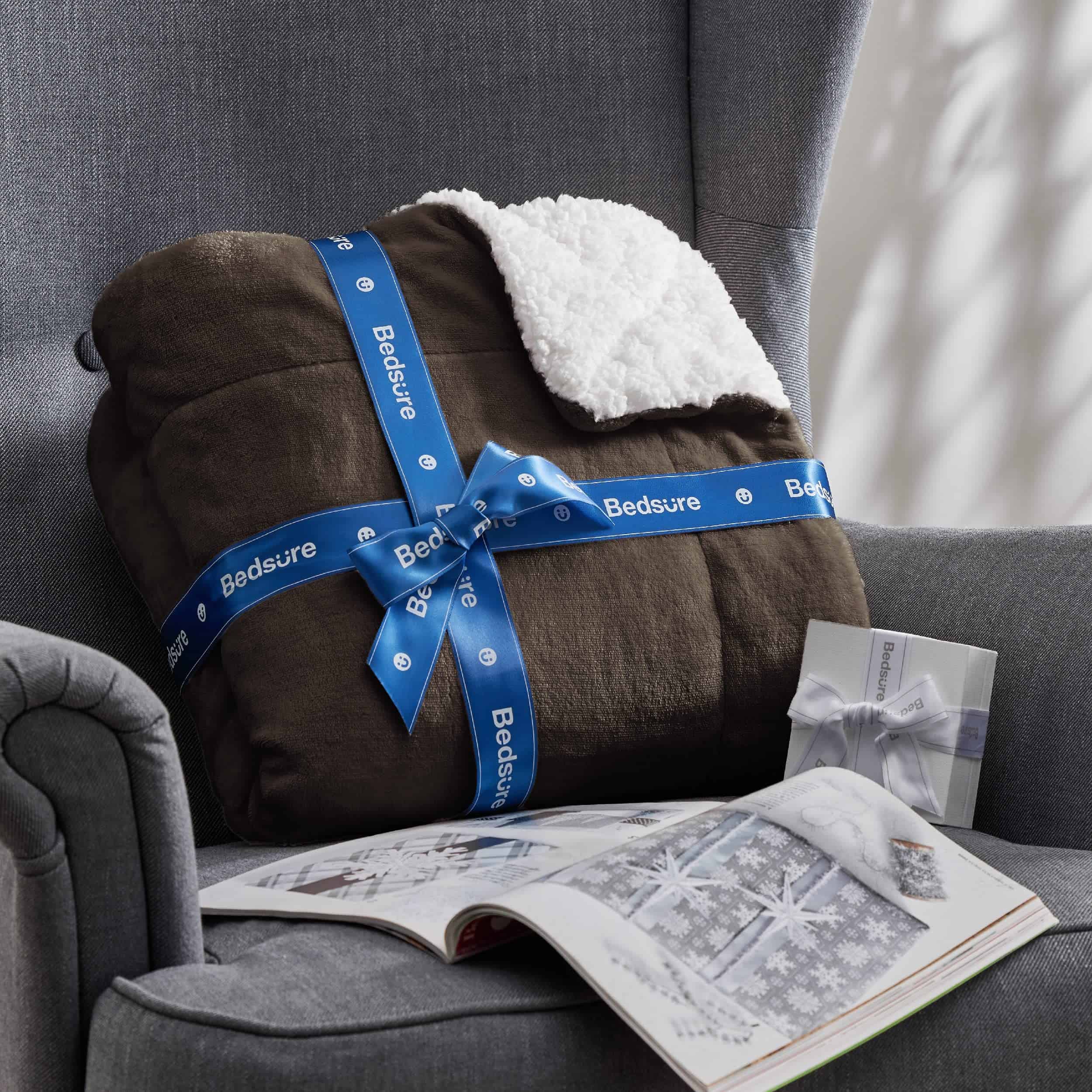 Mantas de Franela Sherpa Bedsure Tamaño Queen -Marrón