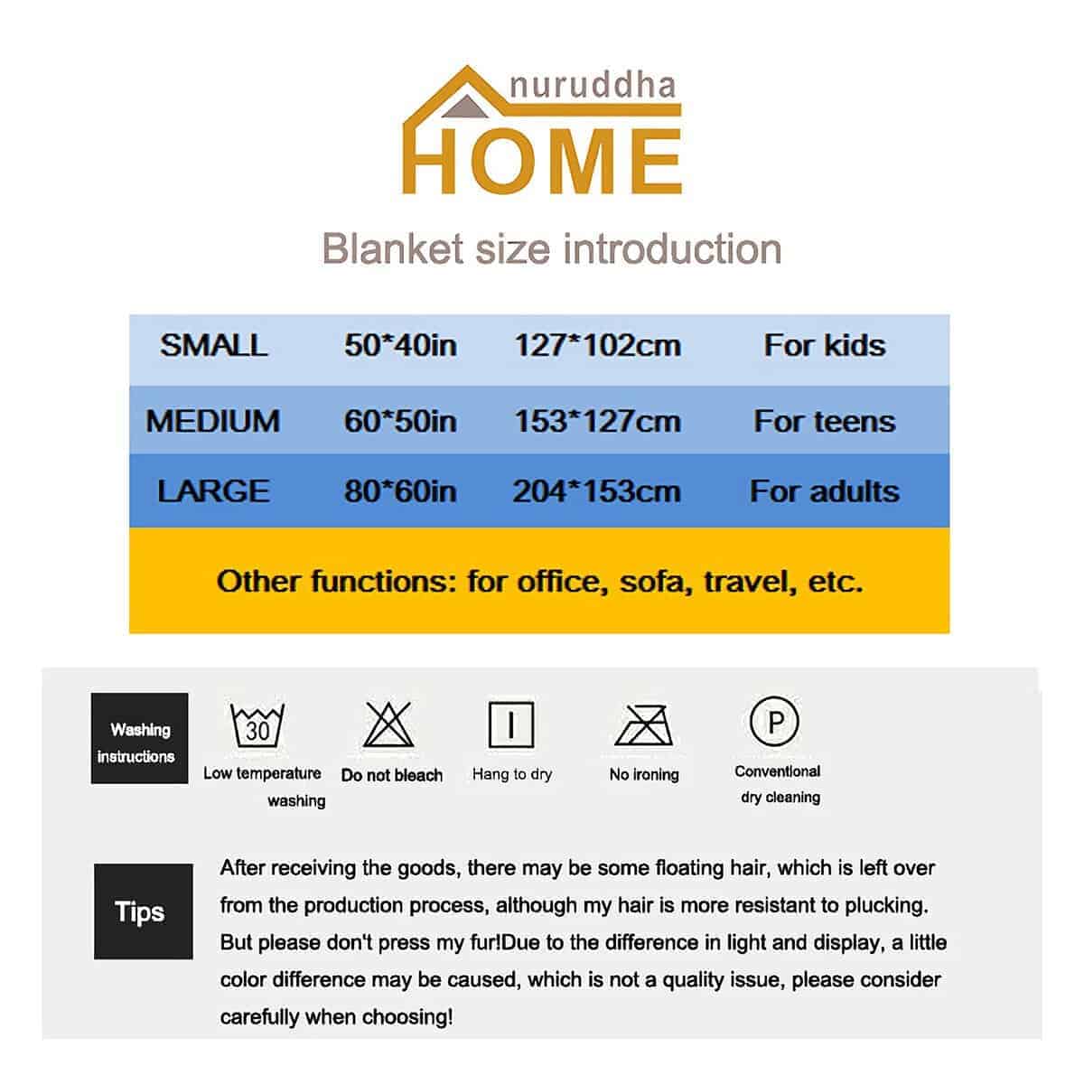 2. Tamaño: Hay tres tamaños para elegir, adecuados para niños y adultos. Es el tamaño ideal para una comodidad y calidez extra al ver la TV. Los colores brillantes le dan a esta manta una apariencia elegante y notable y hacen que tu habitación esté llena de una sensación única. Una excelente opción de regalos para personas de todas las edades, adecuada para dormitorios familiares, habitaciones de invitados, habitaciones infantiles, casas de vacaciones, salas de estar, oficinas o cualquier habitación en la oficina o para viajar.